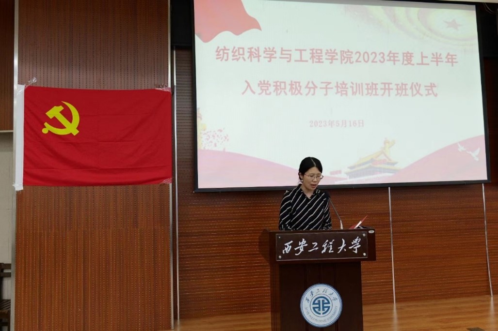 伴随着雄壮激昂的国歌声,开班仪式正式开始。首先,付成程向入党积极分子说明了举办本次入党积极分子培训班的重要性,强调入党积极分子要端正入党动机,树立共产主义远大理想。接着,朱宇军宣读了《必赢优惠y272net纺织科学与工程学院关于举办2023年上半年入党积极分子培训班的意见》。学员代表2022级纺织工程卓越02班董涵同学表态发言,她表示将珍惜培训机会,提升自身能力,服从组织管理,遵守培训纪律,端正入党动机,发挥模范作用,更加坚定申请入党时的初心,在学习生活中勇于创新、甘于奉献、精益求精,同时作为纺织人积极传承“梦桃精神”,让“梦桃精神”进一步发扬光大。