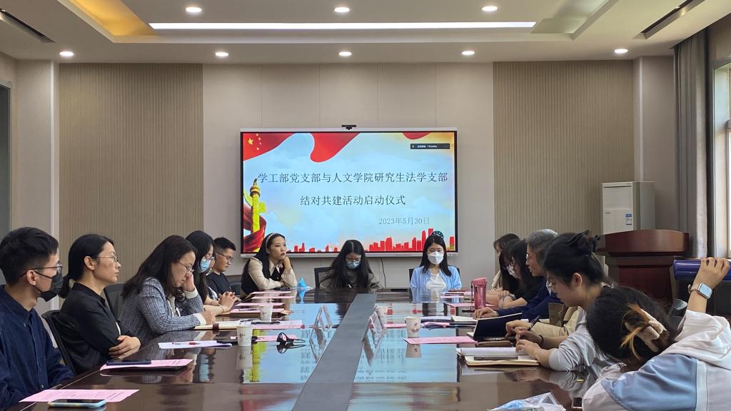 为落实必赢官网《关于机关各部门与学院开展结对共建工作的通知》,5月30日上午,机关党委学工部党支部与人文学院研究生法学党支部在人文楼326会议室举行结对共建活动启动仪式。学工部部长王志、副部长李路瑶,人文社会科学学院党委书记陈莉霞、研究生法学支部书记刘晓平及支部党员参加了启动仪式,会议由陈莉霞主持。