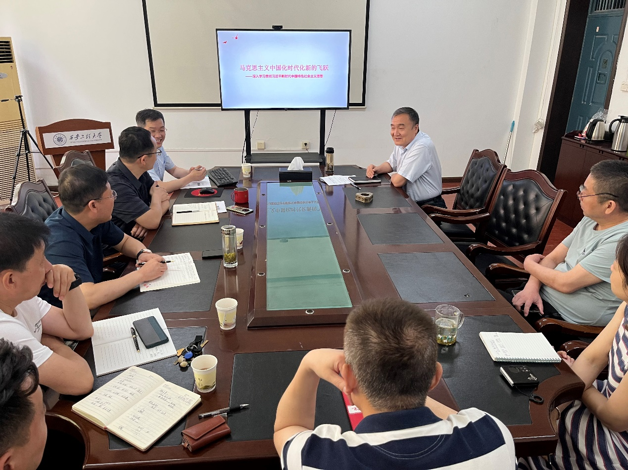 为深入学习贯彻习近平新时代中国特色社会主义思想,进一步开展好主题教育活动,提高党员教职工的政治理论素养,7月5日上午应用技术学院直属支部邀请马克思主义学院屈旻老师以《马克思主义中国化时代化的新飞跃》为题讲授党课,学院全体党员教职工参加。