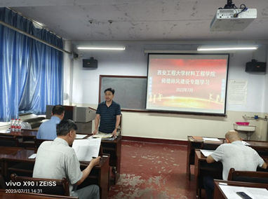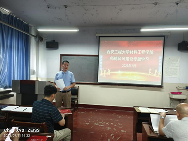 会上,院长贺辛亥对学院师德集中学习教育工作做了部署,要求各教研室、各教工党支部,一是积极组织开展师德师风建设政策文件学习;二是认真开展警示教育,做到警钟长鸣;三是梳理收集师德先进典型事例,同时全面排查师德师风突出问题,建立师德工作台账;四是青年教师撰写师德师风建设心得体会。要求各项工作要全员覆盖,扎实推进,为学院营造出“敬业立学、崇尚美德、风清气正”的育人环境。