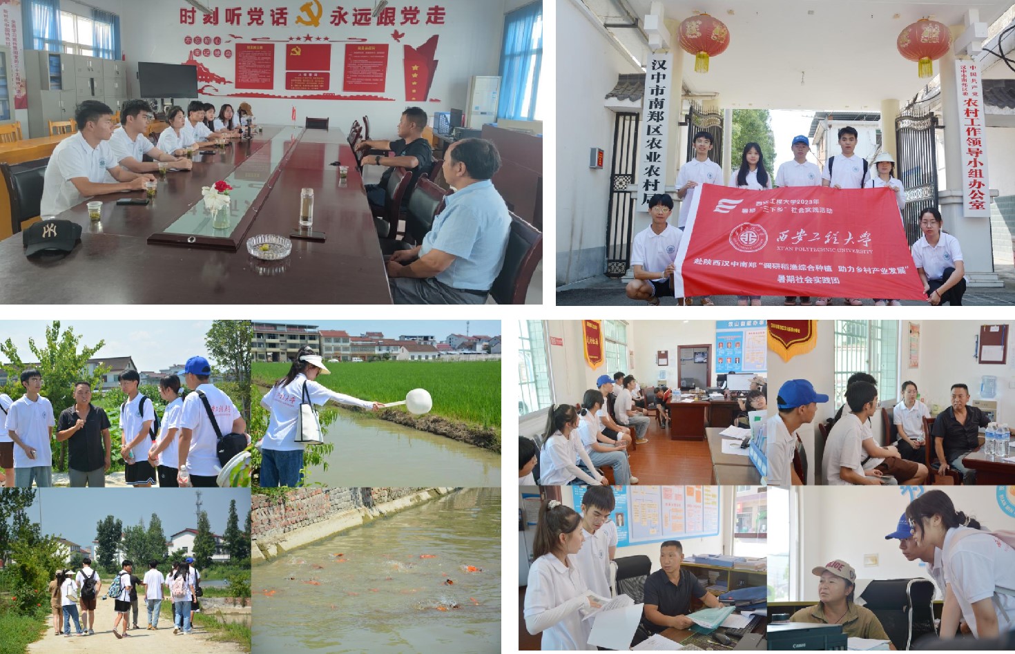 助力乡村振兴,建设美丽乡村。7月17日至22日,“调研稻渔综合种植,助力乡村产业发展”暑期社会实践团赴陕西汉中市开展实践活动。实践团以稻渔产业可持续发展为主题,由具有纺织工程、环境工程、材料科学与工程等学科背景的10余名学生和2名教师组成。该实践团2021年组建,2022年获评省级优秀服务队,在前两年调研的基础上,实践团再次出发,用青年担当助力乡村振兴。实践团分别前往了汉中市南郑区农业农村局、南郑区水产工作站(渔政站)、汉山街道草堰村等地开展调研。通过6天的调研,实践团走访了4个村子,5个政府部门,10余家家庭农场(养殖户),发放300余份调查问卷,对当地的产业模式、农业机械等现状进行了深入调研,实践团成员深刻认识到产业振兴是乡村振兴战略的基础,一头连着农民群众的“钱袋子”,一头连着乡村振兴的动力后劲。因地制宜发展特色产业,形成绿色安全、优质高效的乡村产业体系,才能为农民持续增收提供坚实的产业支撑。
