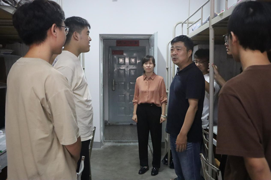 宿舍走访,全面关切学生成长。8月27日,城市学院院长马云、院党委书记王劲伟、党委副书记鱼园、各班主任及全体辅导员走访新生宿舍,与新生亲切交流。走访期间,学院领导实地考察了新生的宿舍环境与学院的迎新工作,询问了同学们的适应情况和生活情况,对刚刚加入城市学院大家庭的新生同学表示了问候与欢迎。学院老师们热情询问了同学们的家乡、对西安和工程大生活是否适应。班主任们也借此机会和对应班级学生建立了联系,向新生同学强调注意调整学习方法、转变学习思路,叮嘱新生们遵守校纪校规,注意人身和财产安全。通过走访活动,实地了解了新生情况,慰问了学生生活,关切了学生发展,不仅拉近了师生距离,更为刚刚迈入大学的新生们指明了学习奋斗的方向。