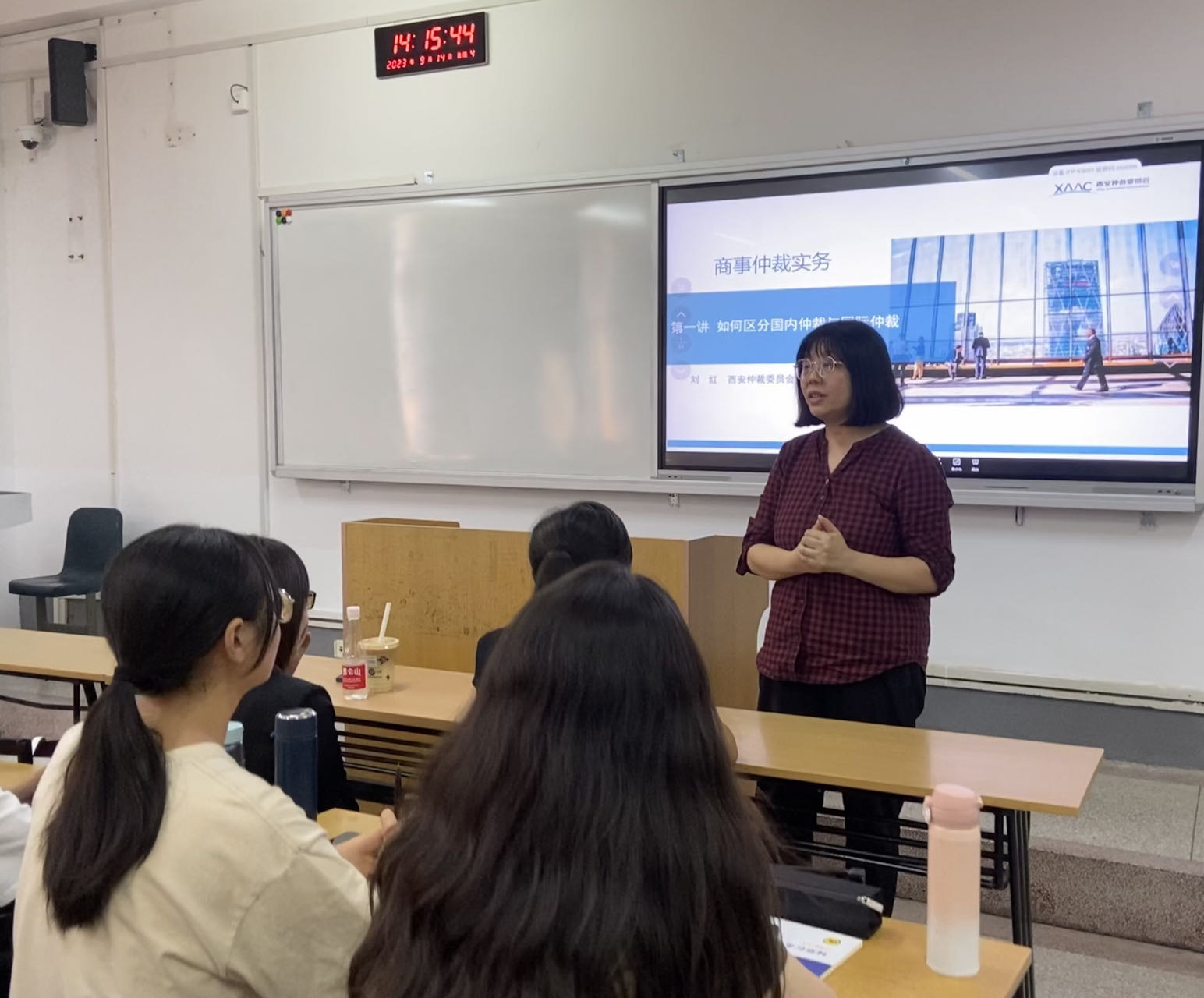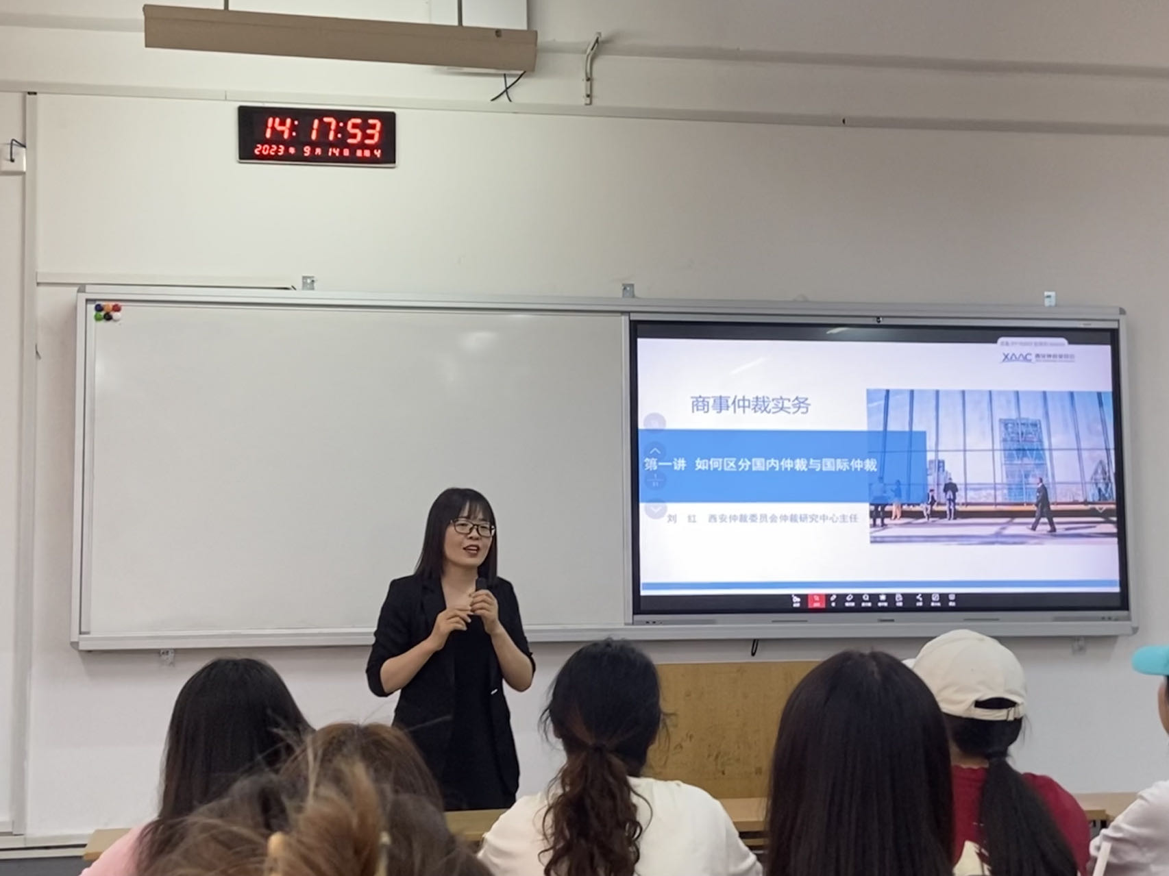 张克英院长对西安仲裁委员会以及本次授课的刘红主任表示热烈地欢迎和由衷地感谢,希望能够加强学校和仲裁委员会的合作,推动法学教育和法治实践融合发展,实现双方资源共享、优势互补、合作共赢。张克英院长也对本次上课学生提出自己的期许,希望同学们重视实践课程,打牢专业基础,成为法律人才。何芳副院长表示希望通过本次课程,依托学校老师、仲裁委授课老师的专业知识和社会经验,打破法科学生重理论、轻实践的传统格局,以提高学生的仲裁技能。开班式结束后,刘红主任正式开始讲授本次课程。