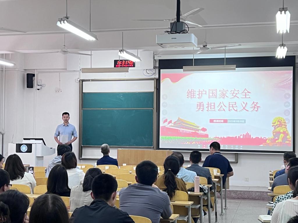 潘光辉与斜口派出所民警共同作安全专项辅导。他们以近期辖区统计的诈骗案件记录为引,说明了高校诈骗案件的特点及现状,并从安全的概念、安全信息收集、电信诈骗预防策略、案事件处理方式、校地协作等方面进行细致讲解。
