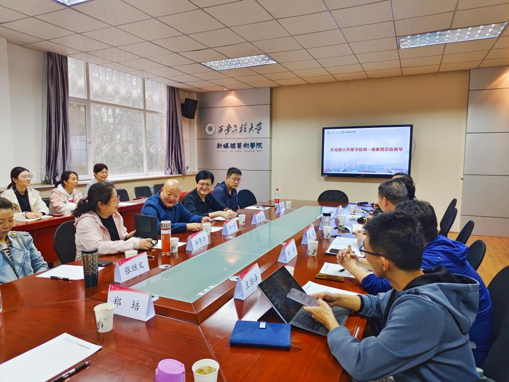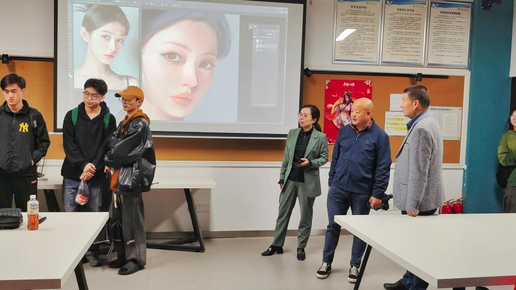 当天,学院领导还陪同胡一梁老师参观了学院实验室,就实验室建设和实践教学进行了现场交流。胡老师认为学院实验室空间充足,管理比较规范,同时也为学院实验室建设提出了积极建议。他指出在实验室的多场景融合应用方面还需多寻求方法和路径,在大型设备的管理上可以更开放一些,根据师生专业实践的多元化需求制定实用有效的管理流程和制度,积极融合校外资源开展实践教学,以更好地为师生服务,提升传媒类专业实践教学水平。(撰稿:姜珊 审稿:张瑾)