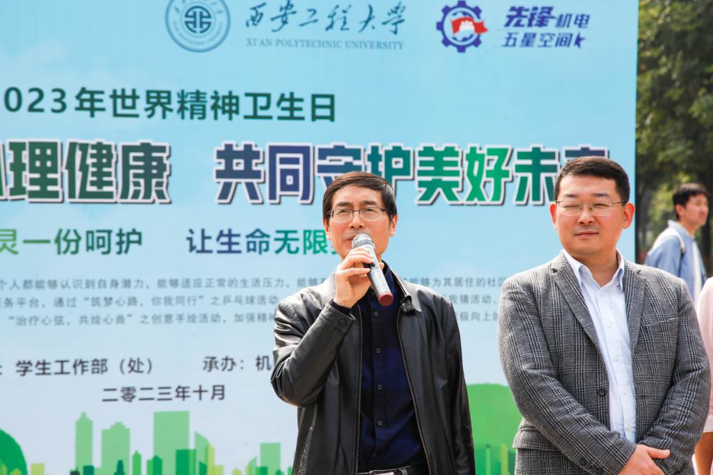 为进一步加强必赢官网学生心理健康教育工作,全面普及精神卫生知识,增强学生的自我心理保健意识,养成正确的心理健康观念,培养学生健全的心理素质, 10月10日,由学生工作部(处)主办,机电工程学院承办的“促进大学生心理健康,共同守护美好未来”2023年世界精神卫生日主题活动在临潼校区中心广场顺利举办。学院党委书记阚佩、学生工作部(处)副部长冯涛、学院副书记冯翊、大学生心理健康教育与咨询中心主任刘蓉和全体老师以及学院全体辅导员参加了活动。