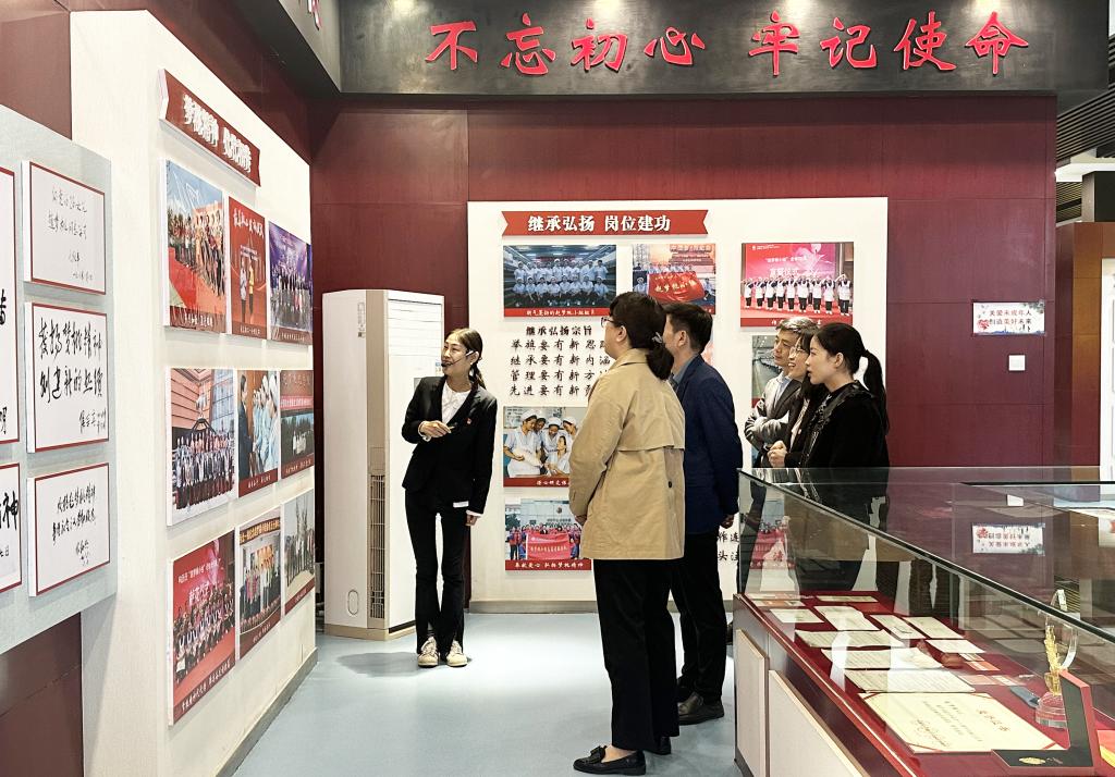 接着,师生党员来到赵梦桃纪念馆,学习参观了赵梦桃同志的先进事迹和荣誉展品。在“赵梦桃小组”历任组长的光荣谱前,艰苦卓绝、迎难而上的劳模精神震撼了每一个人;在放置珍贵纪念品的陈列柜旁,朴实无华、钻研拼搏的工匠事迹感动着每一颗心;在老一辈无产阶级革命家习仲勋同志对“赵梦桃小组”的题词墙下,精益求精、甘于奉献的平凡英雄激励起每一份热忱。