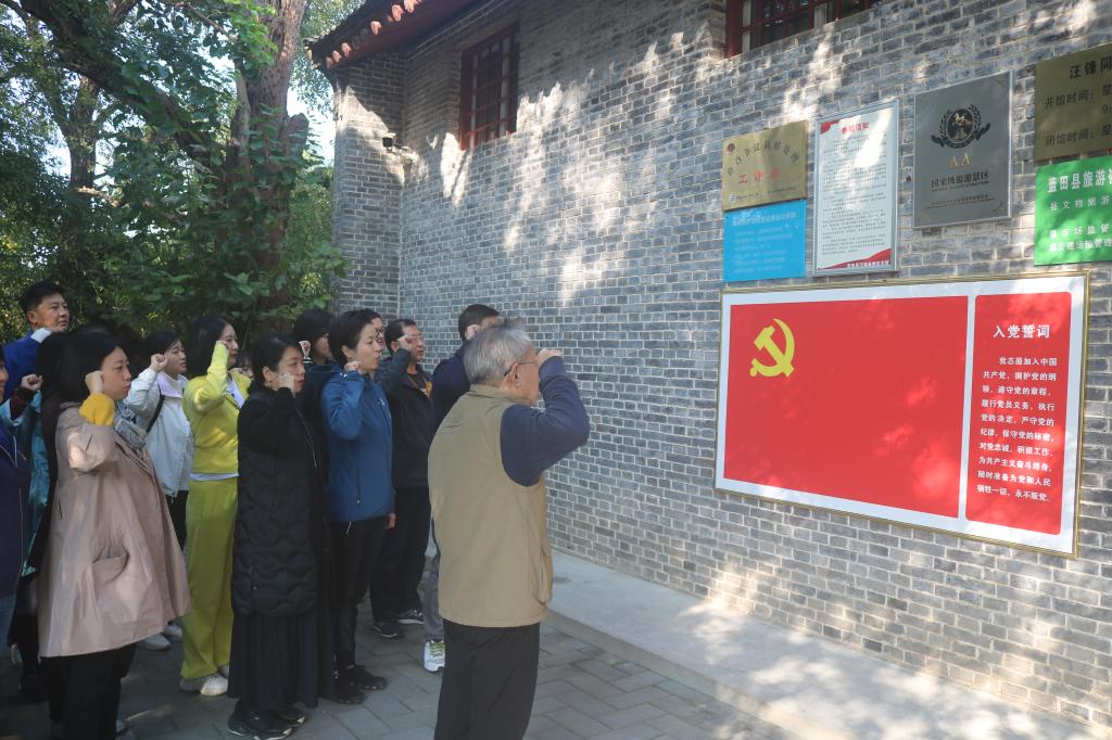 参观后在党旗下,学院党委书记李筱胜带领同志们重温入党誓词,大家举起右手握拳,面对鲜红的党旗进行了庄严宣誓。
