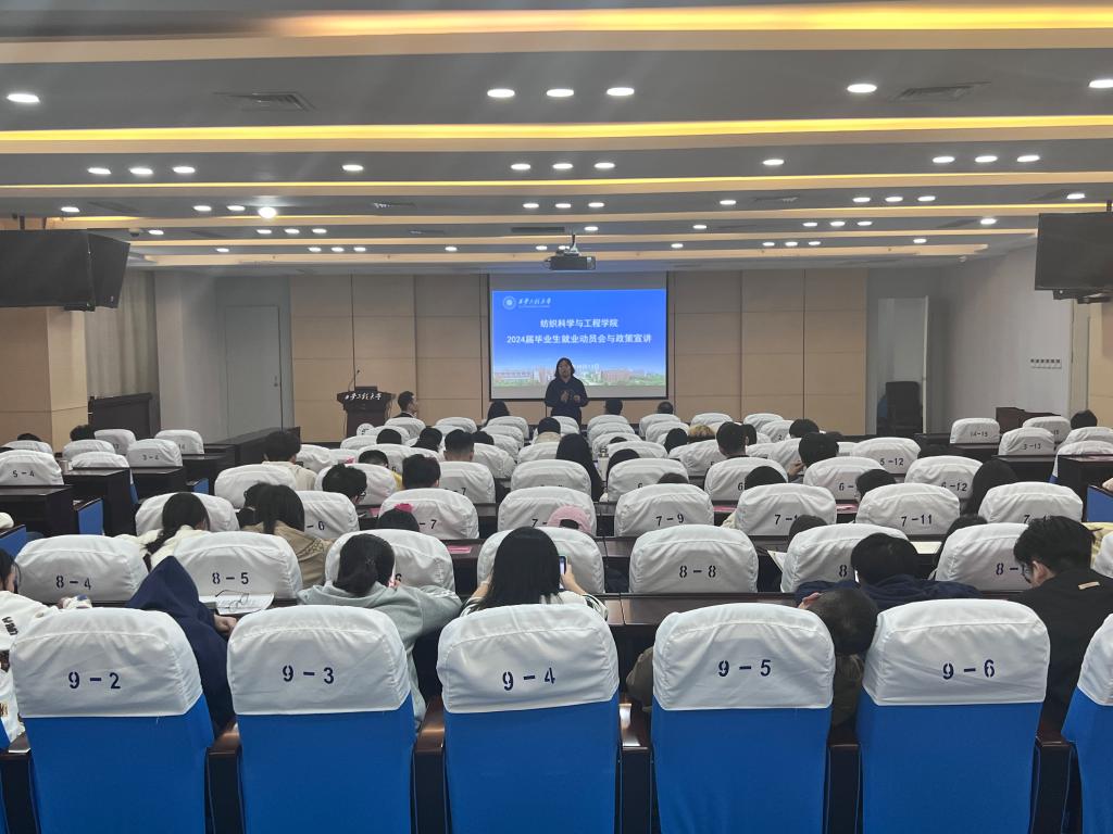 纺织科学与工程学院高度重视学生就业工作,充分利用“一站式”学生社区平台,由校招生就业处、学院领导班子、学院专业教师、优秀校友以及辅导员形成合力,共同为学生顺利就业提供服务、答疑解惑、落实育人实效。本次就业动员会的举行为将要走出校园的学子们提供了求职方向及未来的职业规划参考,让同学们充分了解了就业形势和政策,为学院2024届就业工作吹响了号角。(撰稿:付成程审稿:李伟)