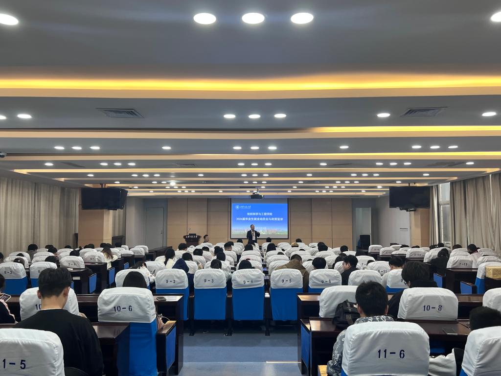 首先付刚对今年的就业形势进行了宣讲。他与同学们进行了互动交流,介绍了就业环境、就业形势、简历制作的重要性、面试技巧和考研注意事项。他总结了往年毕业生存在的困惑和问题,结合当前毕业生的学习生活实际,建议同学们要认清就业形势,坚定就业信心,明确就业目标,放平就业心态,拓宽就业渠道,珍惜就业机会,转变就业思想,理性衡量利弊得失,同时期望毕业班同学积极主动就业,早日找到理想工作。接着,学院为同学们发放了就业指导手册。最后学院就业辅导员付成程向毕业生介绍毕业流程及注意事项,她对就业指导手册中的就业程序、就业协议书打印服务等进行了详细的解释说明。
