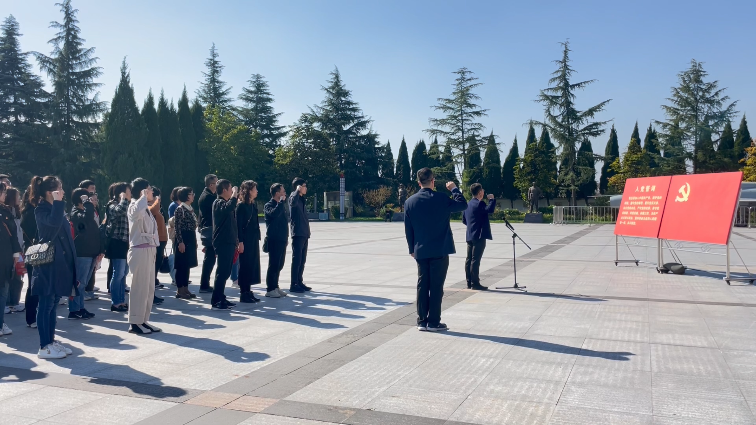 在庄严肃穆的扶眉战役烈士纪念碑前,师生党员代表庄严肃立,集体默哀3分钟,缅怀革命烈士的丰功伟绩,深切寄托对革命先烈的无限哀思和沉痛悼念。随后,由学院党委书记胡西民领誓,大家重温入党誓词,用铮铮誓言表达了继承革命先烈遗志,坚定共产主义信念,忠于党的坚强决心。在扶眉战役纪念馆,通过“审时度势,运筹帷幄”、“诱敌深入,决战扶眉”、“军民齐心,踊跃支前”、“缅怀先烈,不忘初心”四个展区的参观学习,师生党员们更加深入地了解了扶眉战役的背景、过程和意义,深切感受革命先辈为人民事业抛头颅洒热血的坚定信仰。