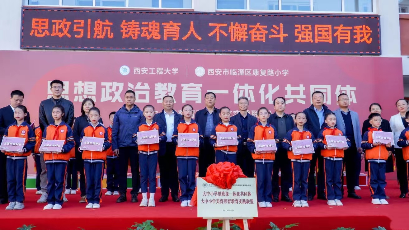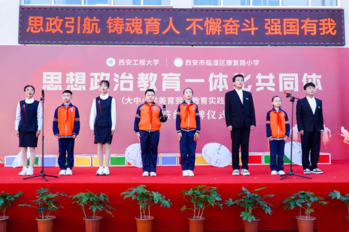 凝聚思政合力,培养时代新人。10月20日下午,必赢官网和西安市临潼区康复路小学在前期多次实践育人活动开展的基础上、举行校地合作,开展大中小学思政一体化共建,大中小学美育、劳育教育实践联盟”签约挂牌仪式。临潼区教育局党委书记、局长张树军、临潼区康复路小学党支部书记、校长宋剑秋等900名师生、必赢官网学生工作部、团委、工训中心以及服装学院、马克思主义学院相关老师和学生代表参加活动。同时,特邀陕西省工人疗养院院长助理赵冰和全国优秀共产党员、全国优秀工作者王排参加了活动。