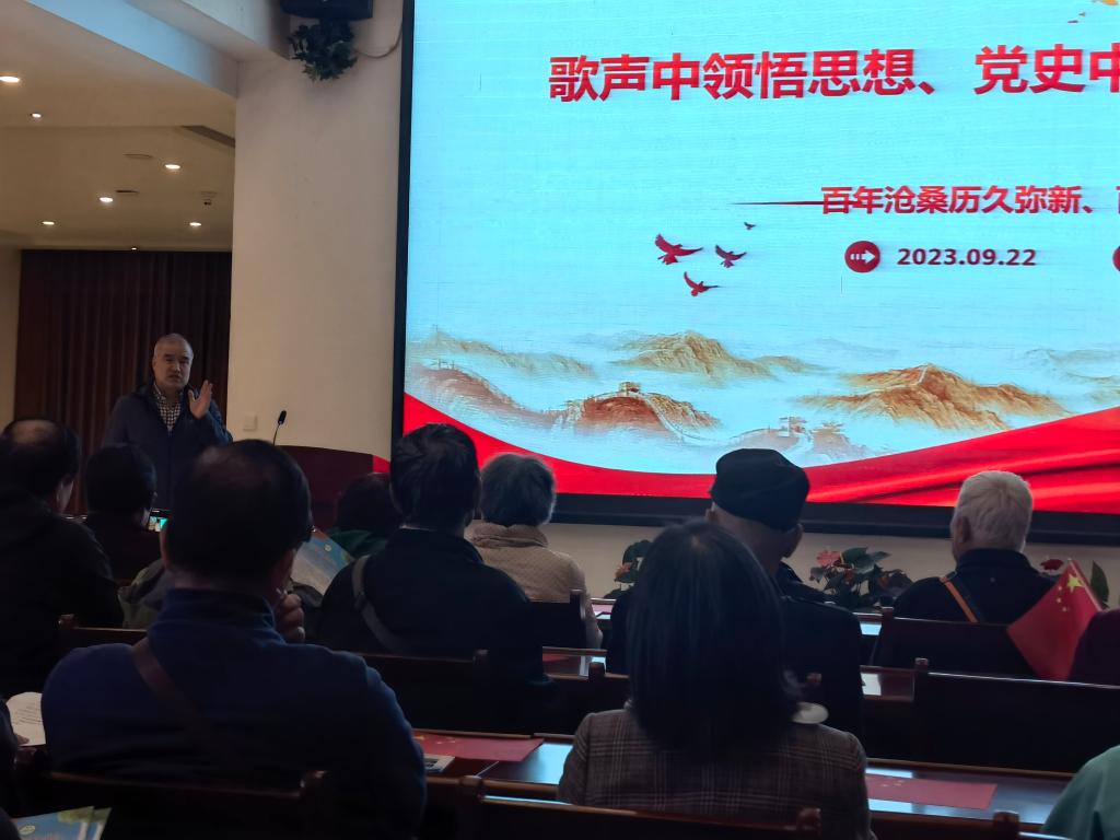 在此次培训活动中,离退休党委书记张平以《歌声中领悟思想、党史中筑牢根本》为题,为全体人员讲授党课。张平同志结合自己学习党的二十大精神、学习贯彻习近平新时代中国特色社会主义思想主题教育体会,用一个个生动鲜明的小故事以及十余首经典的红色歌曲,从牢记中国共产党的性质宗旨、弘扬伟大建党精神、永远跟党走、把学习贯彻习近平新时代中国特色社会主义思想不断引向深入四个方面,声情并茂地为大家讲了一堂别具一格的党课。授课过程中,张平以深情、饱满的声音穿插演唱了经典歌曲《映山红》、《红星照我去战斗》、《山丹丹开花红艳艳》、《毛主席的话儿记心上》等耳熟能详的经典红色歌曲,把气氛推向了高潮,带动了全体人员的共同参与。