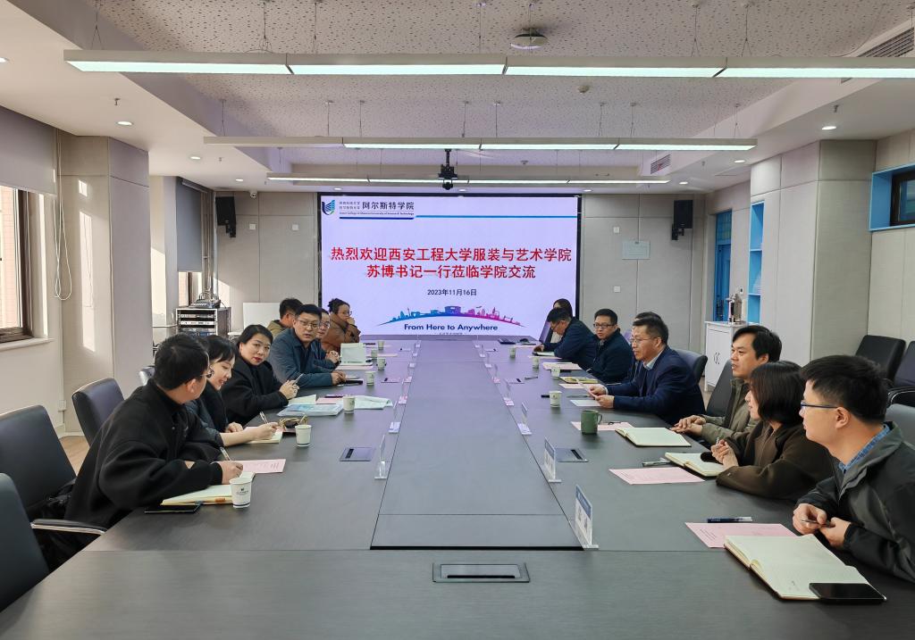 11月16日上午,必赢官网招生就业工作处、服装与艺术设计学院赴陕西科技大学阿尔斯特学院进行中英合作办学相关事宜调研,服装与艺术设计学院党委书记苏博、副院长袁燕,招生就业工作处副处长(主持工作)付刚、招生办公室副主任车骏以及中英合作项目小组成员参加调研,陕西科技大学阿尔斯特学院党委书记贺涛、学院常务副院长薛朝华、副院长王伟伟,招生办公室主任王志东、副主任王宁及学院办公室、教务办公室、学生工作办公室相关人员参加座谈会。