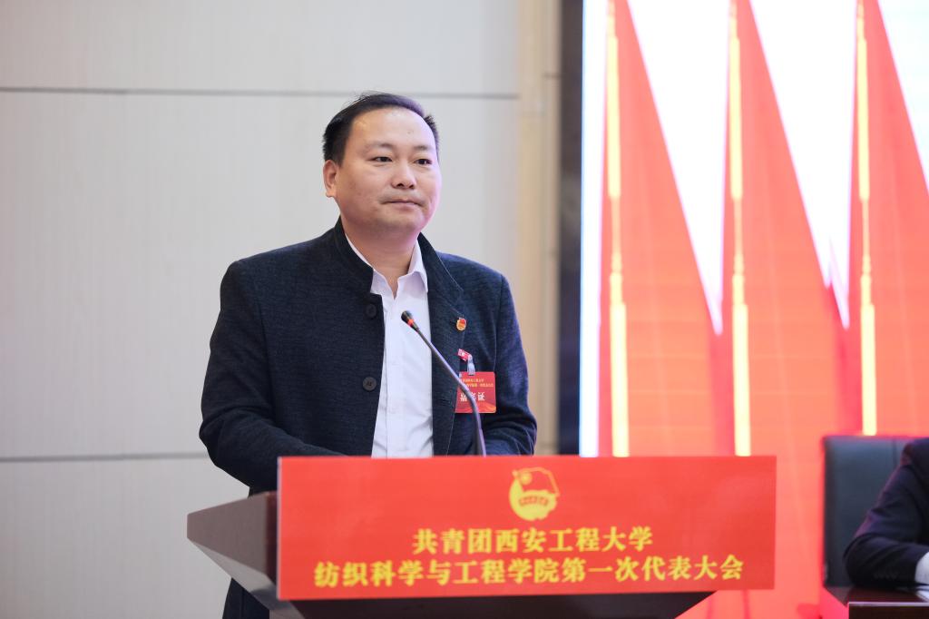 李伟在讲话中强调本次团代会是学院各级共青团组织和广大团员青年政治生活中的一件大事。他高度肯定了过去几年学院共青团工作所取得的成绩。他代表学院党委向为学院共青团事业做出贡献的全体团干部、团员青年表示衷心的感谢,向出席大会的全体代表并通过他们向全院青年朋友们致以亲切的问候和美好的祝愿。他向全院团员青年提三点希望和要求:一是坚定理想信念,树立崇高的理想。要将个人抱负与党和国家发展相结合,传承西纺传统和特色文化,将“厚德求实、坚毅自强、开拓创新、追求卓越”的学院精神贯穿始终。二是锤炼品德修为,练就过硬本领。增强学习的紧迫感,珍惜青春、不负韶华,努力学习掌握科学文化知识和专业技能,使自己的思维视野、思想观念、认识水平跟上时代发展,以真才实学践行纺织人的初心使命。三是担当时代使命,勇于砥砺前行。广大团员青年要担负起时代使命,保持初生牛犊不怕虎、越是艰险越向前的刚健勇毅,让青春在新时代改革开放的广阔天地中挥洒,让人生在实现中国梦的奋进追逐中展现出勇敢奔跑的英姿。