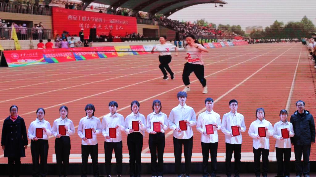 师文钊宣读表彰文件。获奖的先进集体和个人在全场热烈的掌声中,依次上台从颁奖嘉宾手中接过证书,并与颁奖嘉宾合影留念。优秀学生标兵获奖代表、暑期社会实践省级优秀服务队成员、科技竞赛国赛省赛获奖代表依次上台进行了分享,向参会的同学们传递了宝贵的经验。