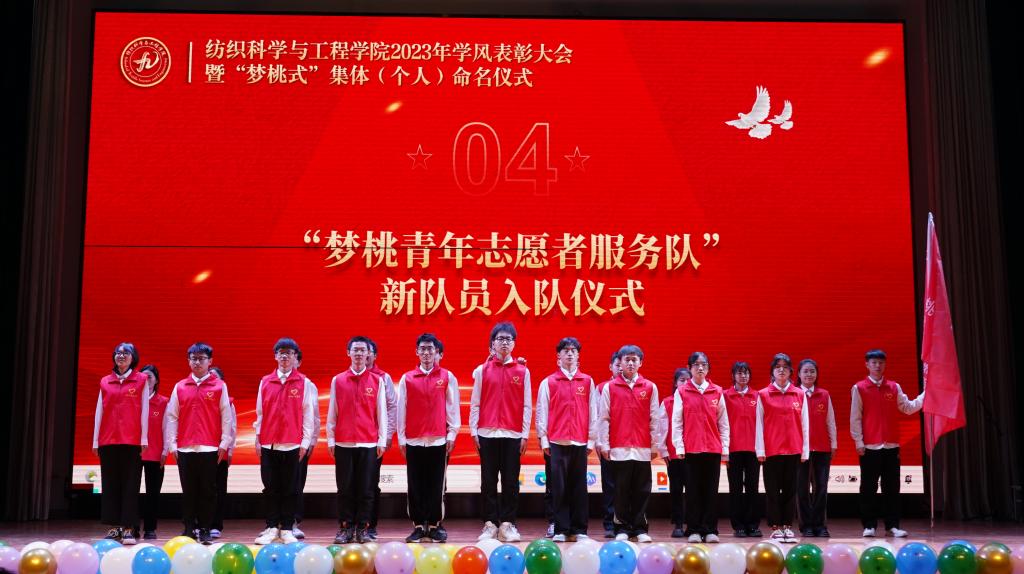 11月30日晚,纺织科学与工程学院2023年“梦桃式”集体(个人)命名仪式暨“纺青春华章 织锦绣前程”迎新文艺汇演在临潼校区大学生活动中心顺利举办。校党委委员、党委学工部部长王志,校团委书记刘俊富,党政办副主任张旭,纺织科学与工程学院党委书记李伟、副院长师文钊、党委副书记朱宇军、教师代表、全体辅导员、获奖学生代表和2022级、2023级全体本科生共同参加了本次活动。