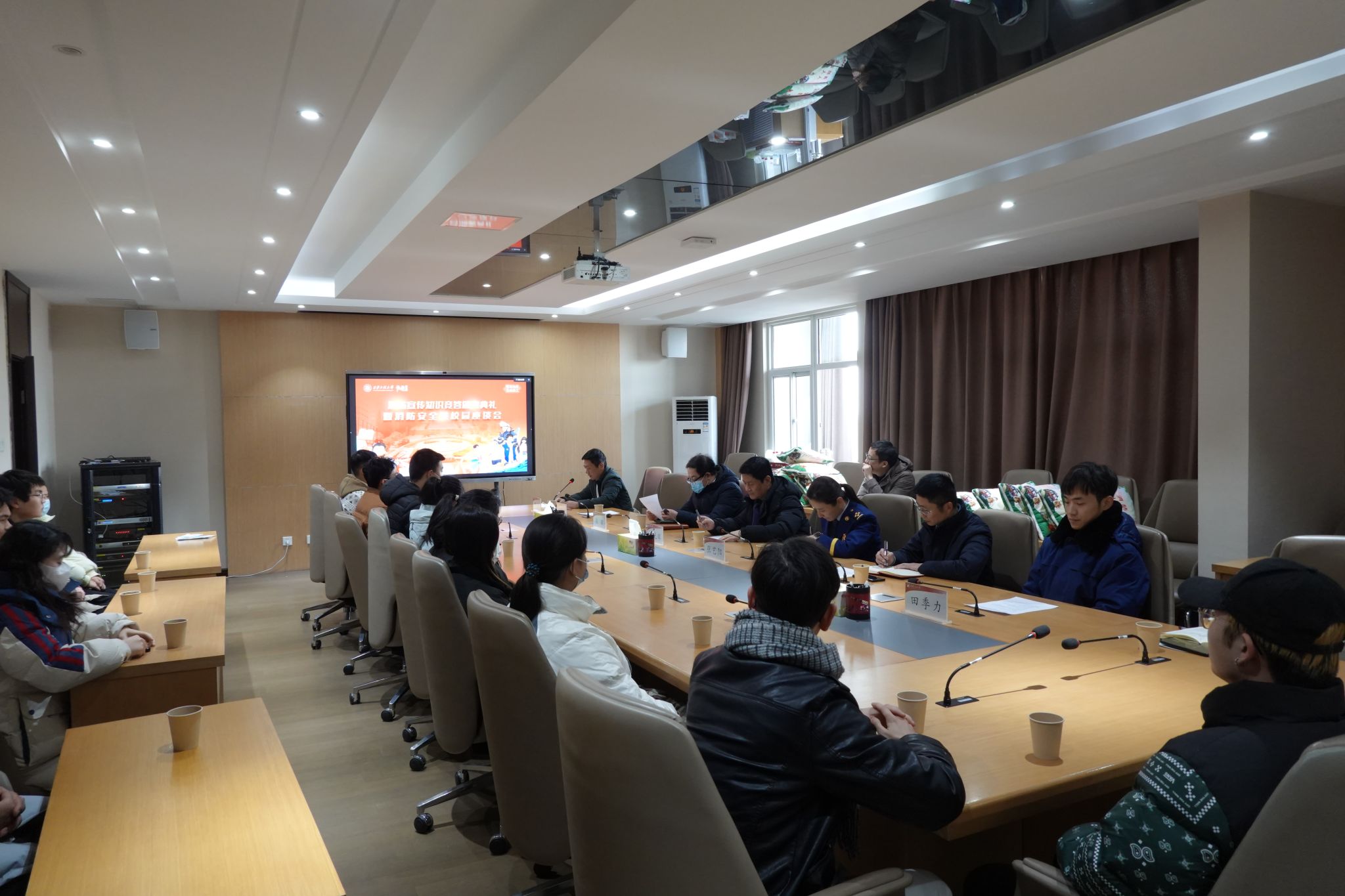 12月20日下午,必赢官网联合临潼区消防救援大队召开了消防知识竞答颁奖仪式暨消防知识进校园座谈会。临潼区消防救援大队工程师张艺阳、宣教干事田季力,必赢官网党委学工部部长王志、稳定办主任张骥、党委保卫部部长潘光辉出席会议,20余名获奖师生参加了会议。