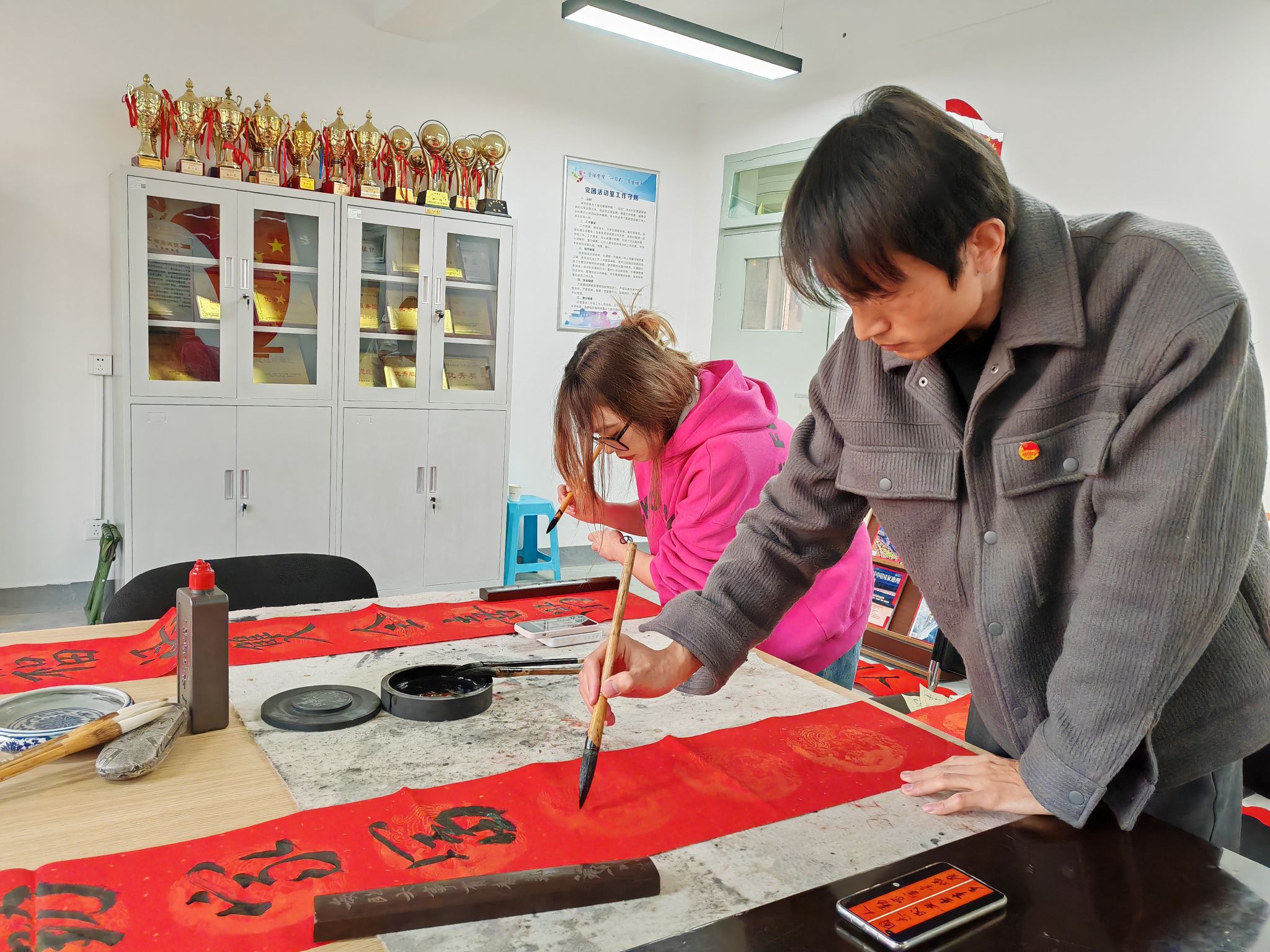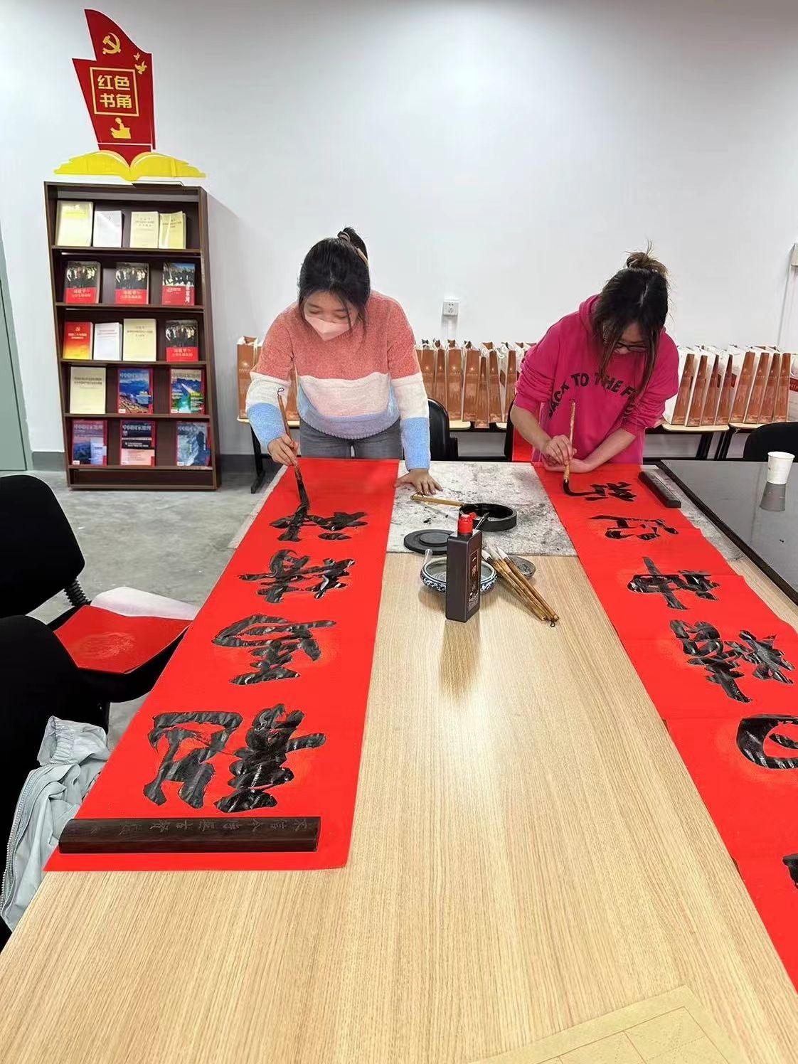 情意绵绵,书写吉祥。组织辅导员和书法协会学生花费两天时间为同学们手写300余副春联和福字,辅导员在学生放假返乡之际走近学生社区,给同学们提前道一句祝福。同时,也了解学生寒假返乡情况,提醒尚在宿舍的同学注意用电安全并保持良好卫生环境,叮嘱同学们离校时注意关好门窗、电闸,提醒同学们提高安全防范意识,路上注意安全。