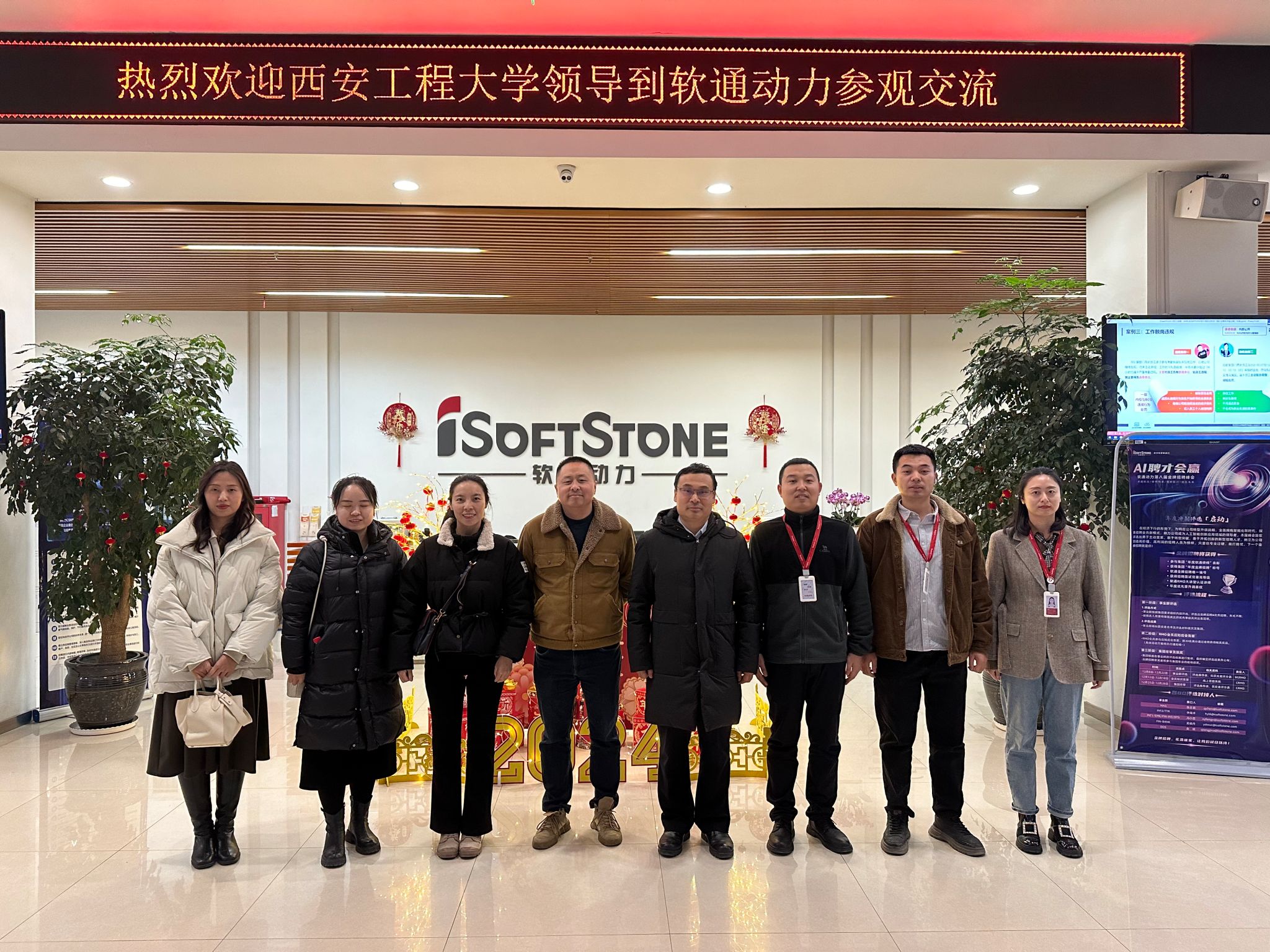 1月31日,计算机科学学院党委副书记赵勇进、学生工作办公室主任朱瑾、2024届毕业年级辅导员左温慧在蔡鹏的带领下前往西安软件园和西咸新区走访相关企业,围绕学生培养、实习、就业能力提升等问题进行了参观交流。