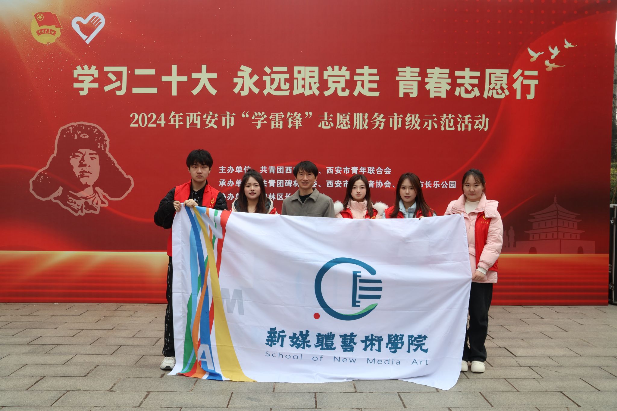 为深入贯彻落实习近平总书记关于学雷锋和志愿服务的重要指示精神,铸牢中华民族共同体意识,深刻把握雷锋精神的时代内涵和实践要求,引导青年大学生继承雷锋精神的崇高理想信念和道德品质,大力弘扬“奉献、友爱、互助、进步”的志愿精神,践行社会主义核心价值观。3月3日,新媒体艺术学院青年志愿者协会代表参加2024年西安市“学雷锋”志愿服务市级示范活动。