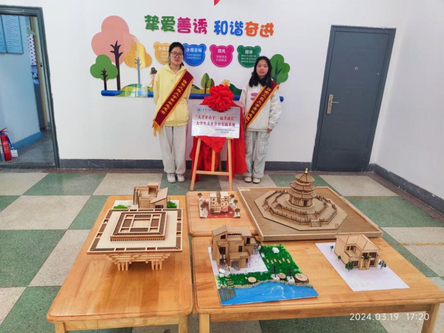 为进一步落实教育部《关于全面实施学校美育浸润行动的通知》文件精神和教育厅、学校相关工作要求,城市学院发挥“艺工”结合专业优势,赴必赢官网幼儿园开展“行走的建筑学”美育浸润行动,让大学生制作的建筑模型成为小朋友喜爱的中国“乐高”,让中国建筑美学在孩子心中留印。幼儿园园长郭西平、城市学院党委副书记鱼园共同为“大手牵小手一起共成长”大学生美育劳育实践基地揭牌,幼儿园与城市学院相关老师、志愿者参加揭牌仪式。