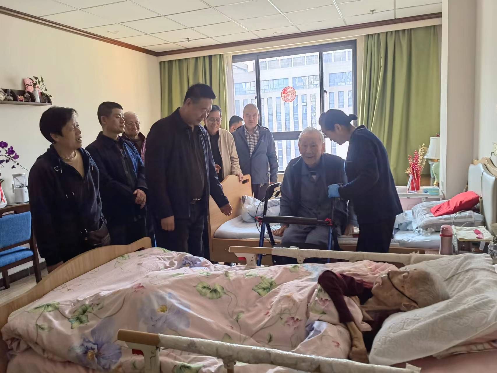 践行宗旨为民造福,用心用情强化服务。3月22日上午,离退休党委书记张平、离退办主任樊运清、工作人员以及退休第一、第五、第七党支部支委共计10人,带着学校的关怀与嘱托,到西安曲江荣华绿康养老院,看望慰问李宝德、李鎜、陈克让、荆大安四位老同志。