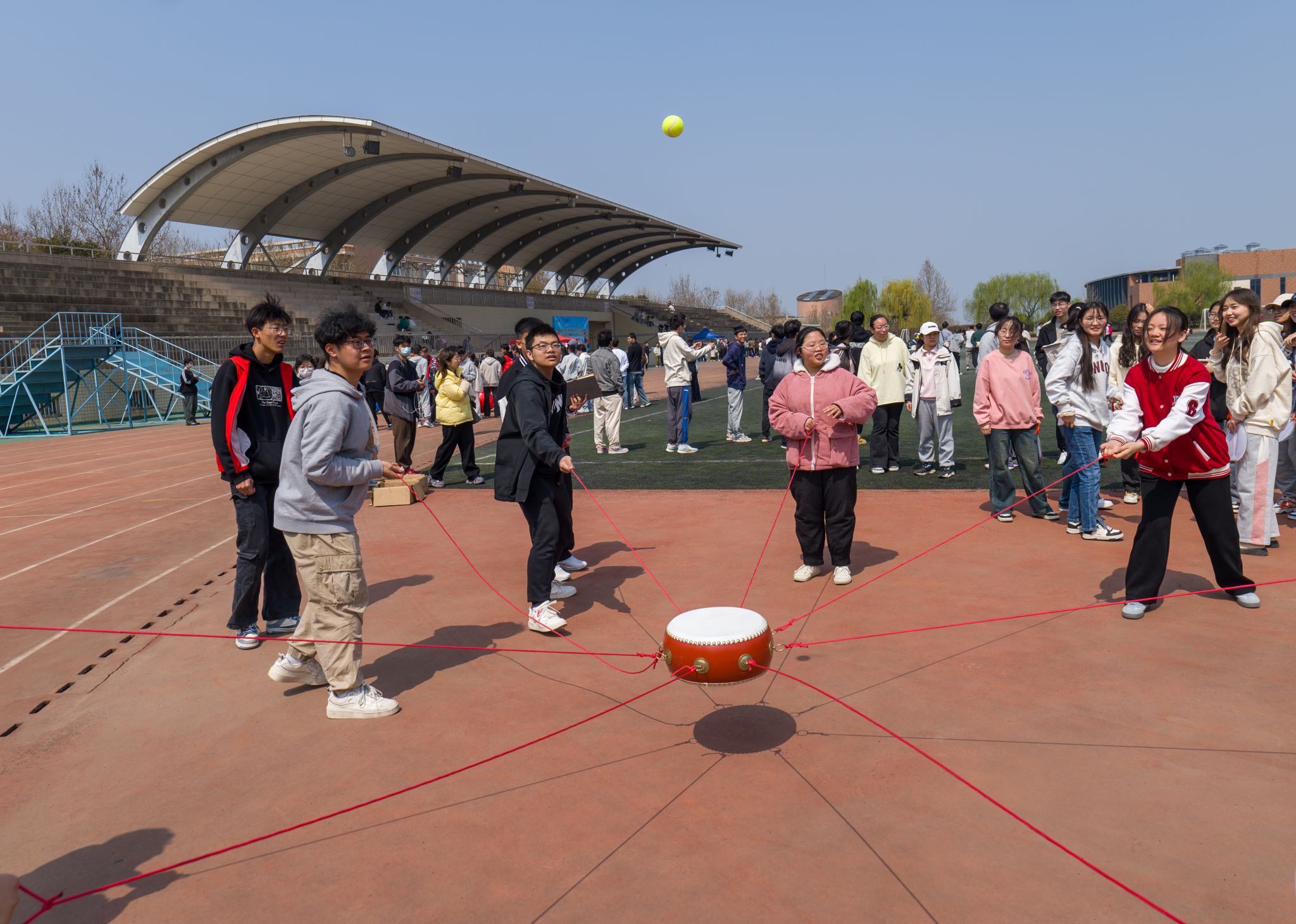 本次趣味运动会分为“疯狂毛毛虫”“众星捧月”“团队背夹球”“飞盘比赛”4项活动。比赛中,同学们玩在其中、乐在其中,各代表队均展现出良好的竞技水平与精神风貌。与此同时,团扇制作、DIY石膏娃娃涂鸦等特色心理体验项目活动同步在场边火热开展。