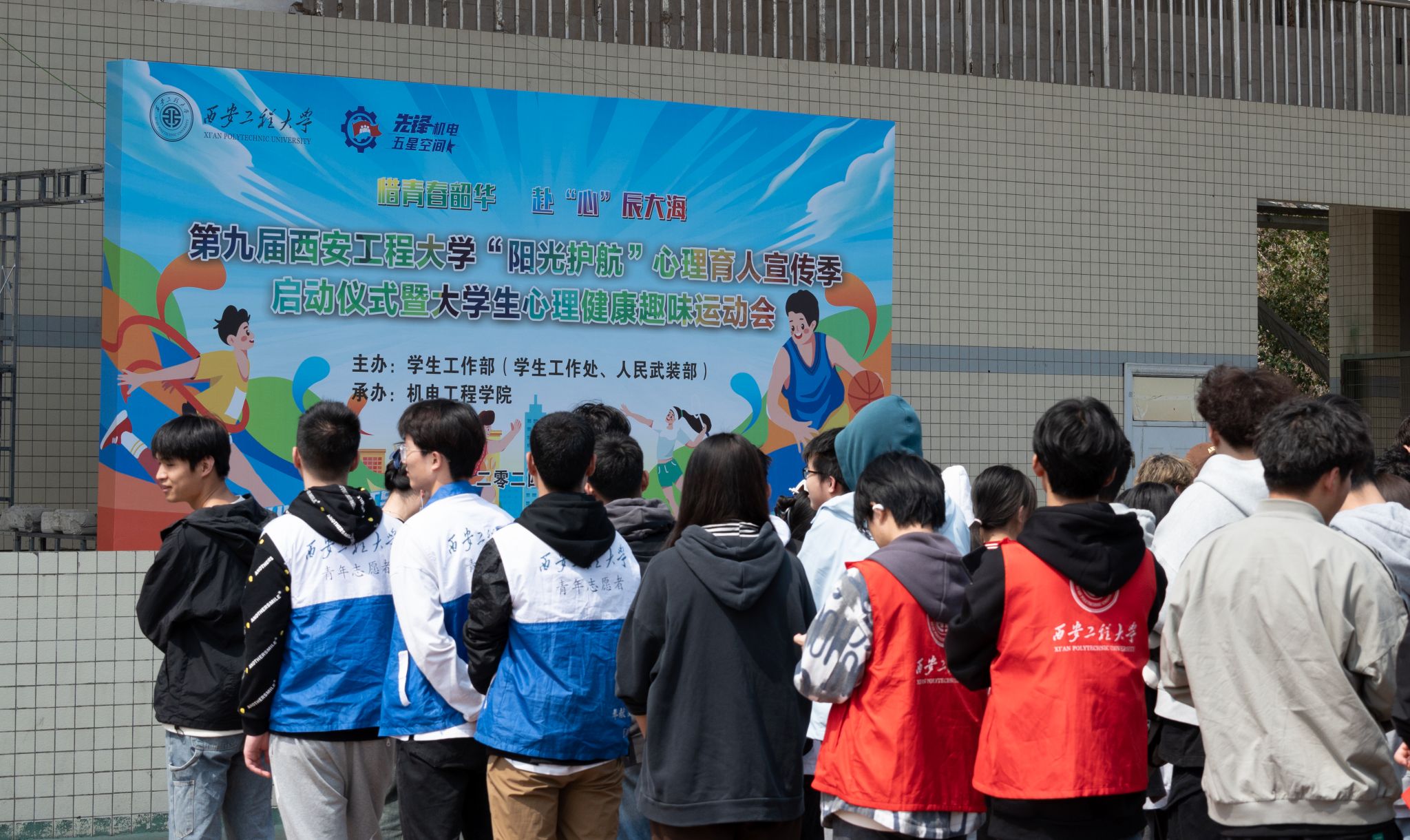 3月25日,由学工部(学生处、武装部)主办,机电工程学院承办的必赢官网第九届“阳光护航”心理育人宣传季启动仪式暨大学生心理健康趣味运动会在临潼校区东环体育场顺利举行。学生工作部部长王志、机电学院党委书记阚佩、学生工作部副部长冯涛、机电学院副书记冯翊、大学生心理健康教育与咨询中心主任刘蓉、心理健康教育与咨询中心全体老师、各学院心理辅导员、机电工程学院全体辅导员及来自各学院200余名学生参加了本次活动。
