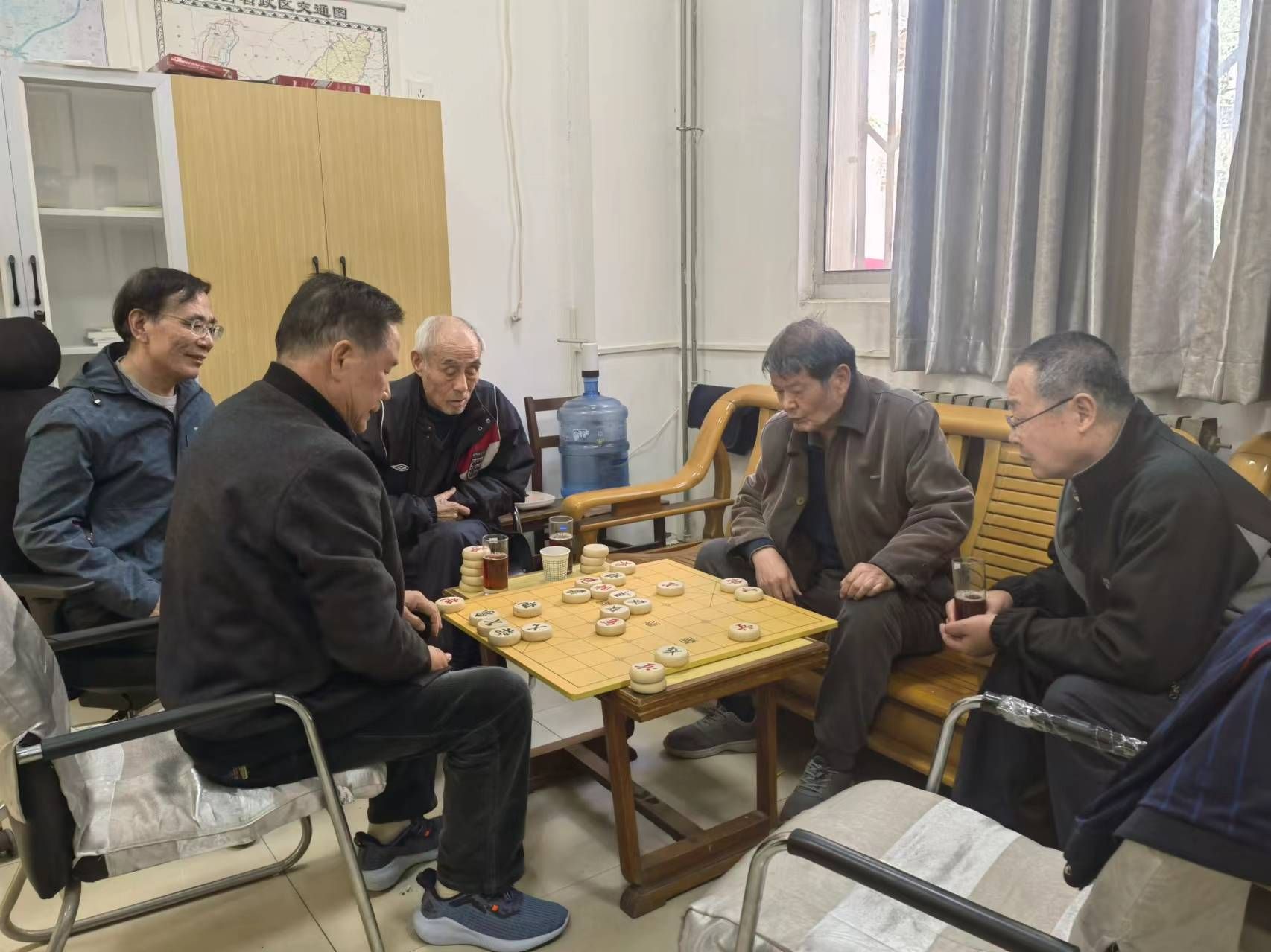 简短的仪式之后,乒乓球、象棋友谊赛展开激烈角逐。象棋比赛现场,老同志们有的屏息凝视,有的胸有成竹,有的僵持不下。小小的棋桌上,楚河汉界间,上演着安静的对弈,在一步步的兵来卒往中展现出了大家老当益壮,思维敏捷的精神风貌,大家以棋会友,陶冶情操。乒乓球比赛现场,挥臂高扣、海底捞月等一些高难度的技巧动作不断出现,让围观者们发出阵阵喝彩,白色的小球在球台上来回飞舞,时而被一板扣杀,时而被飞身救起,眼花缭乱的场景和着欢呼声、加油声融合在一起,气氛紧张、热烈、和谐,整个活动现场笑声不断、其乐融融。