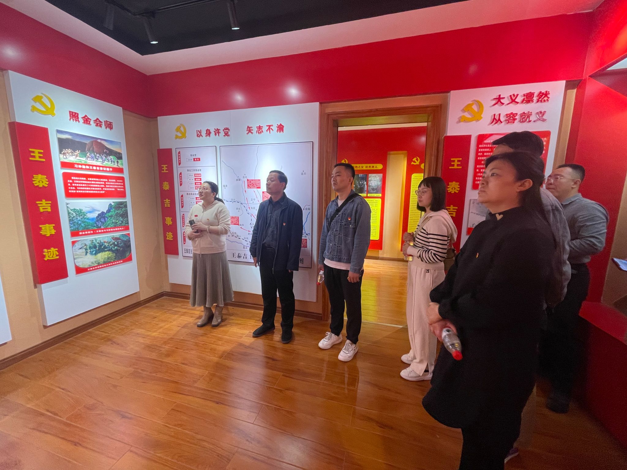 在讲解员的带领下,党员同志们在王泰吉烈士纪念馆里驻足参观,进一步学习王泰吉烈士的英雄事迹和救国情怀。一幅幅珍贵的红色历史资料,把参观人员带到当年硝烟弥漫的战争年代。通过残酷的革命斗争,尖角村先后走出了王泰吉、王岳东、王明钦三名将军。观看了王泰吉成长以及革命斗争的专题片,深深感受到艰苦岁月里革命先烈为了中华民族的解放事业不畏牺牲、奋勇向前的革命精神,更真切地认识了中国革命的伟大进程。
