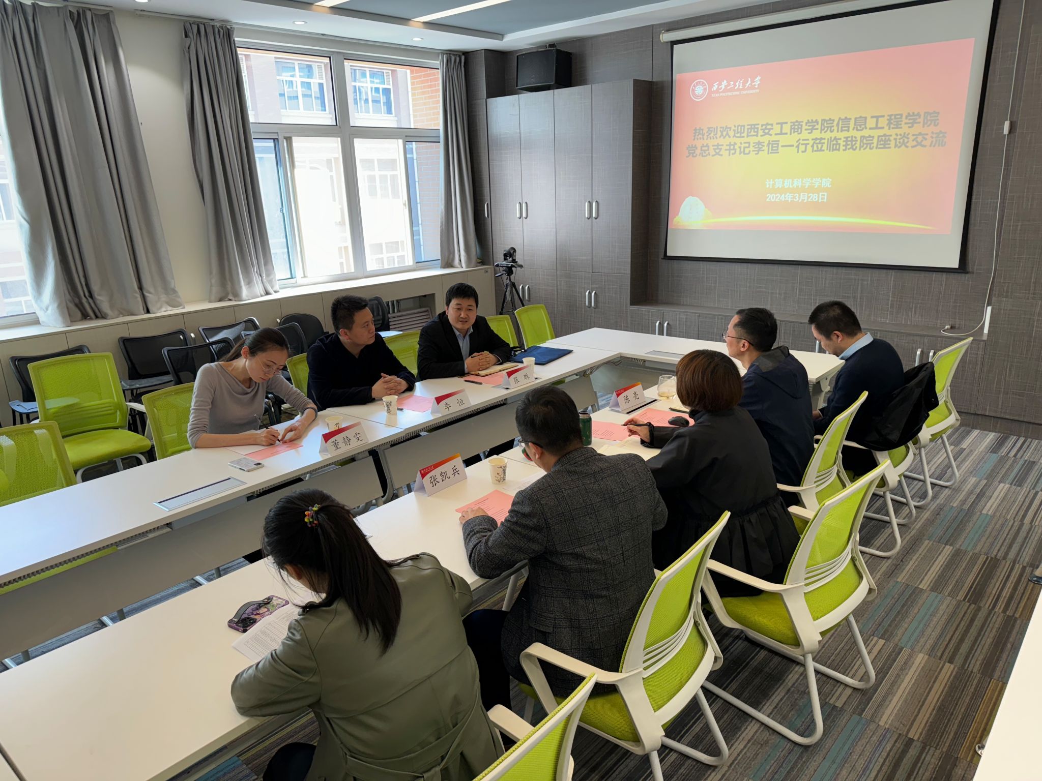 3月28日下午,西安工商学院信息工程学院党总支书记李恒、信息工程学院执行院长张琳、信息工程学院团总支书记董静雯等一行3人到必赢官网计算机科学学院进行交流座谈。计算机科学学院党委书记赵雪曼、副院长陈亮、张凯兵等参加了座谈会。