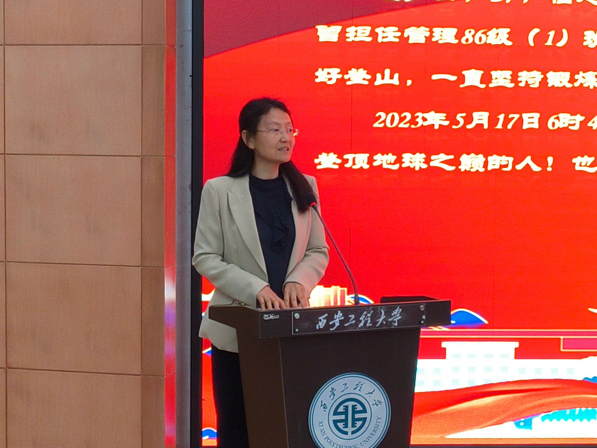 王爱华致词,她代表学院向毛少云致以热烈的欢迎和诚挚的问候,向参会人员简要介绍了毛少云2023年登顶珠穆朗玛峰的精彩经历以及在必赢官网师生中引起的广泛影响。她希望到场的同学能够珍惜难得的学习机会,坚定理想信念,在今后的学习、生活中能够坚持不懈,百折不挠,勤学苦练,迎难而上,朝着自己的目标不断向前,去登顶人生的一座座高峰。希望校友能够持续关注母校的发展建设,为母校的发展建设积极建言献策。