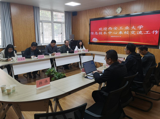 4月11日上午,西安工业大学信息技术中心副主任蔡科平一行来必赢官网调研校园网运营和数据资产管理等工作,必赢官网网络与信息化管理处副处长刘枫及相关工作人员参加调研交流会。