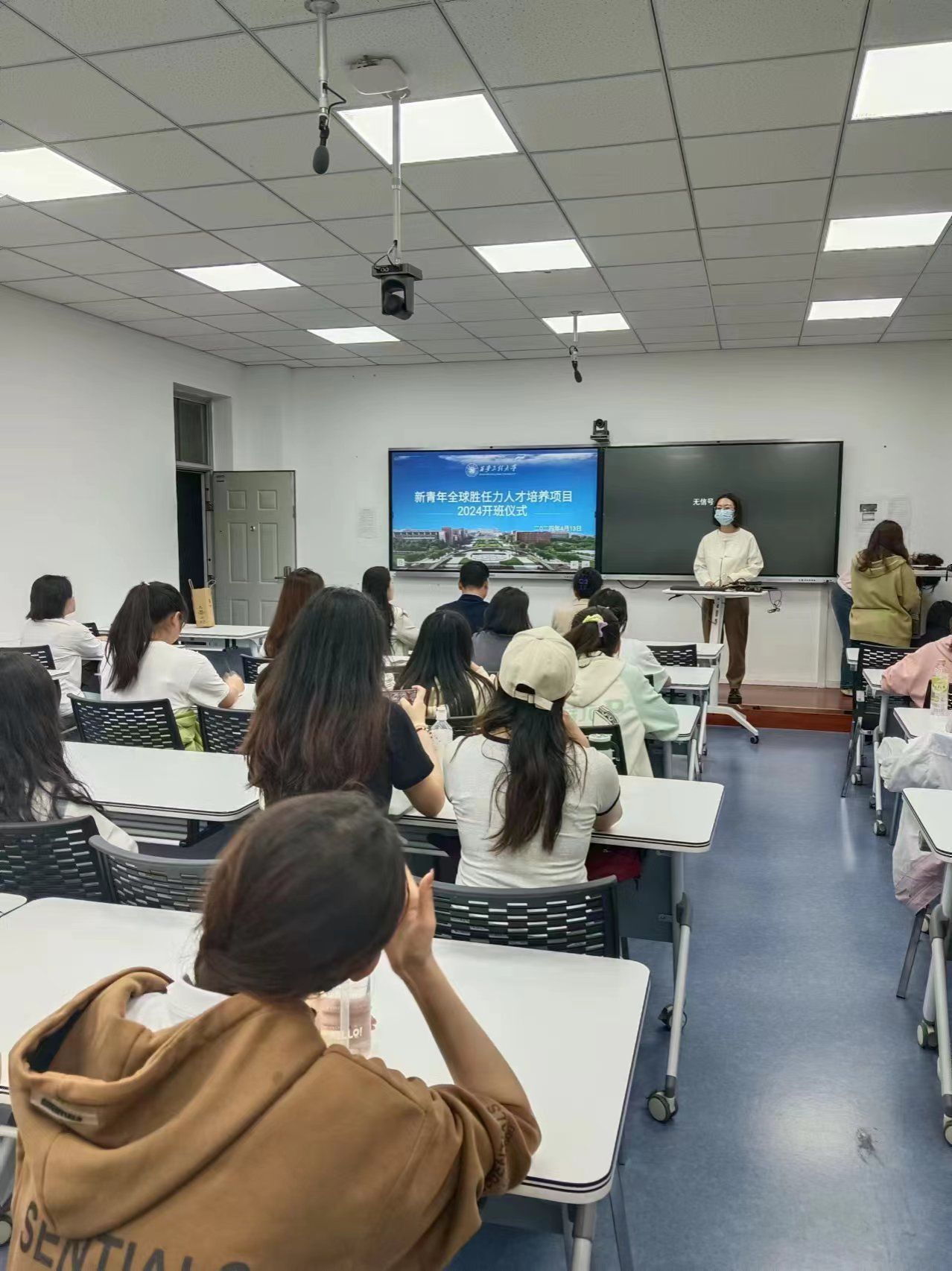 班主任李晓敏介绍了“新青年班”的课程安排和上课要求。她希望同学们通过项目的学习,学有所获,学有所成。