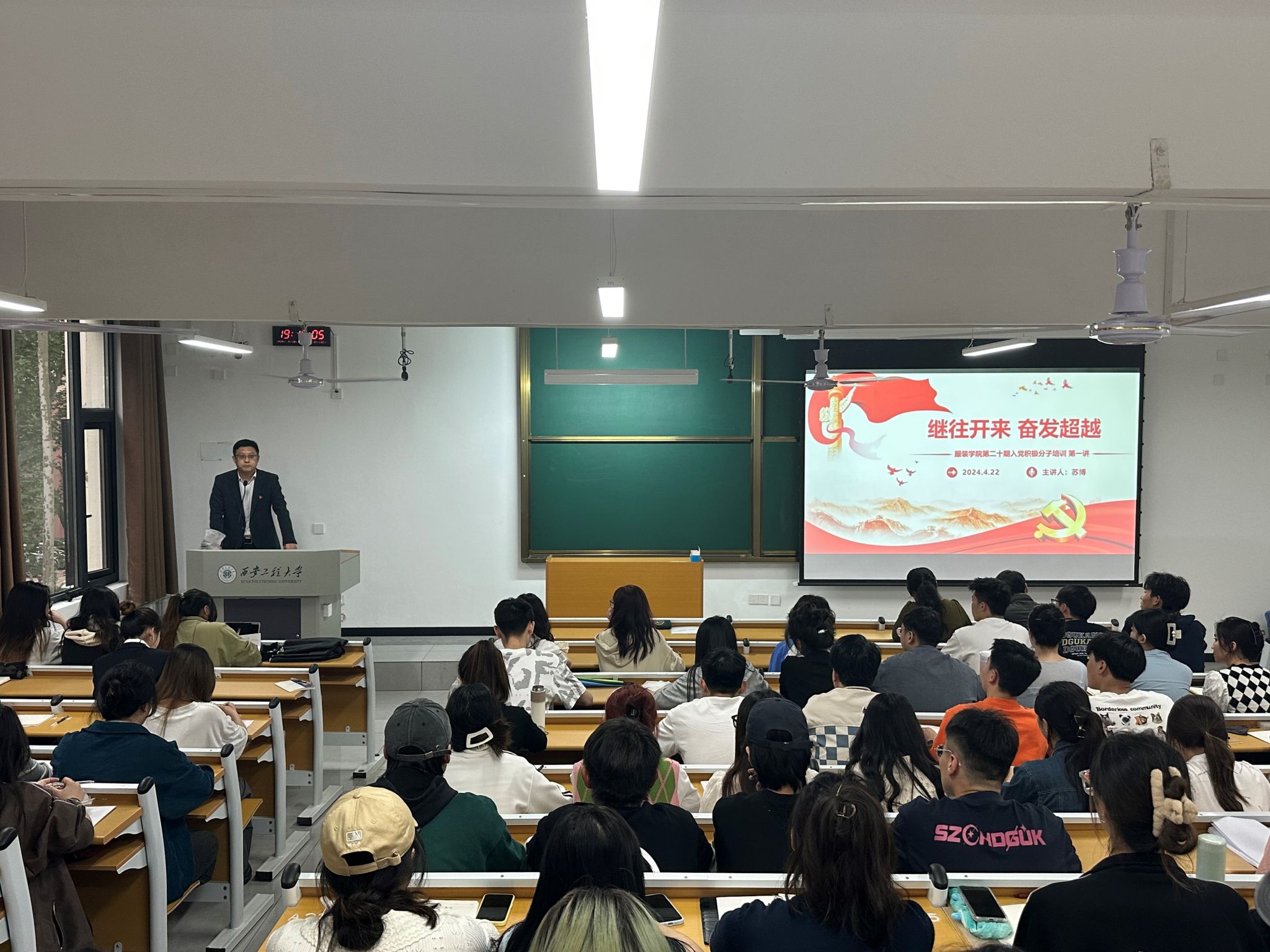开班仪式后,苏博以《继往开来 奋发超越》为主题作开班第一堂党课。党课从四个方面讲解了党章的总纲部分以及党纪学习教育等内容。他运用生动的语言和丰富的历史案例,深刻揭示了中国共产党百年来波澜壮阔的发展历程和辉煌成就,领导全国各族人民取得了革命、建设和改革的辉煌胜利,为中华民族的发展史增添了浓墨重彩的一笔。在苏博的讲述中,学员们深刻感受到了中国共产党的伟大历程和光辉成就,也进一步坚定了他们跟党走、为党工作的信念和决心。
