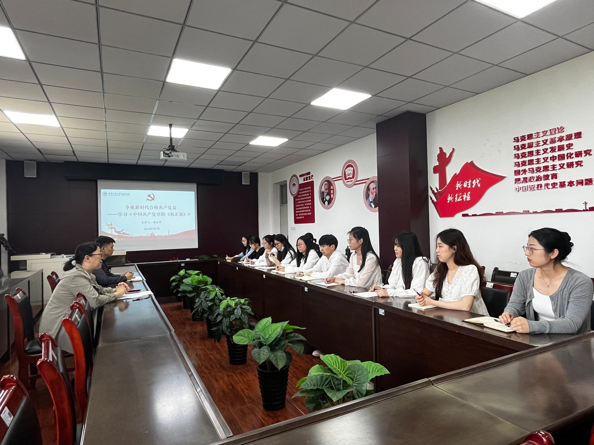 为深入学习贯彻习近平新时代中国特色社会主义思想,进一步加强对入党积极分子的培养教育,提高党性修养和政治素养,5月7日,马克思主义学院党委举办党委书记讲党课暨入党积极分子培训班开班仪式,学院党委书记杨永革、学工办主任孙建荣和全体入党积极分子参加了开班仪式。