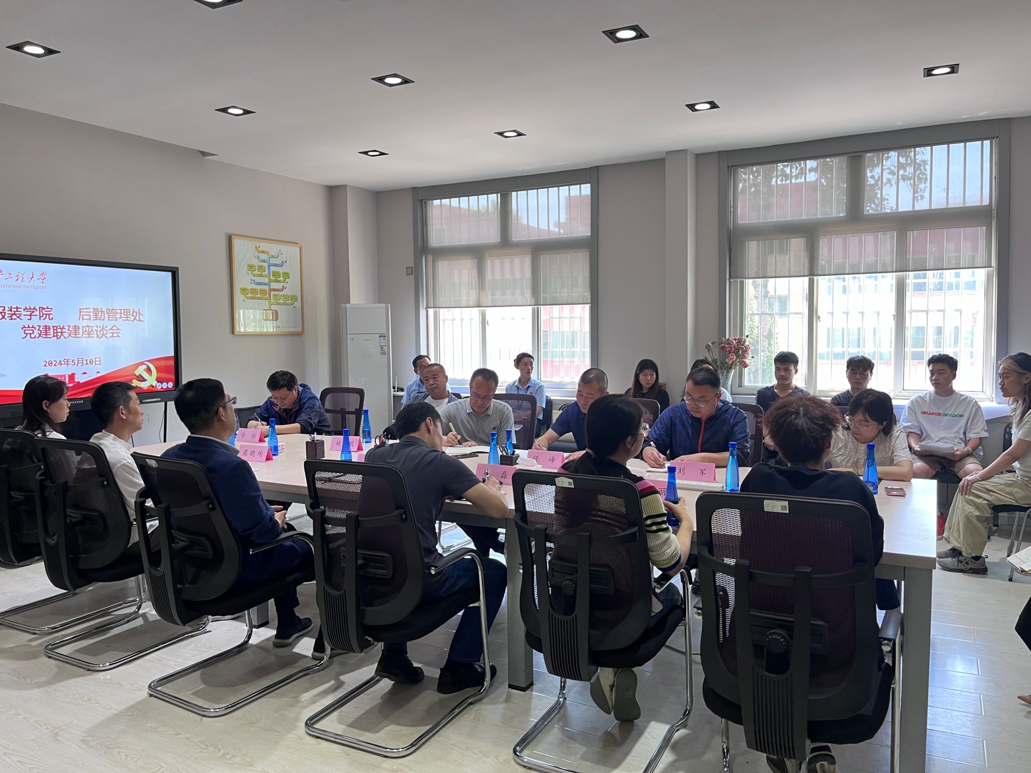 为深入学习贯彻党的二十大精神,充分发挥党建引领作用,5月10日上午,服装与艺术设计学院与后勤管理集团在服装楼三楼会议室召开党建联建座谈会,服装与艺术设计学院党委书记苏博、党委副书记马磊、后勤集团党总支书记杨森、后勤动力科、物业管理科及餐饮科的相关负责人及学生代表20余人参加了本次会议。