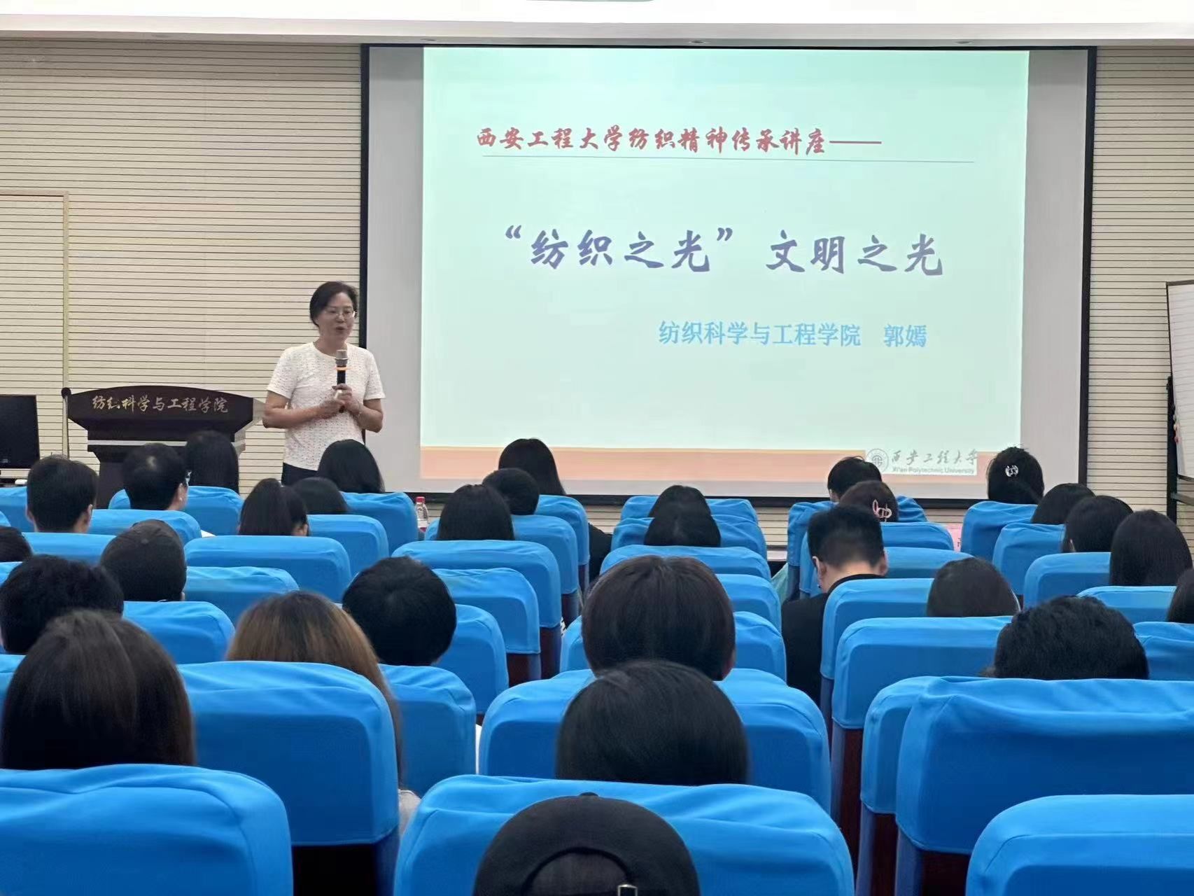 郭嫣教授以“纺织之光 文明之光”为主题为与会师生作了精彩的报告。她深入浅出地阐述了纺织精神的内涵和重要性,并结合自身经历和学院发展为同学们讲述了纺织史、纺织行业的大国工匠故事和一根细纱的无限可能,为同学们上了一堂生动的“经纬天下”思政大课。报告内容丰富、观点新颖,赢得了在场师生的阵阵掌声。