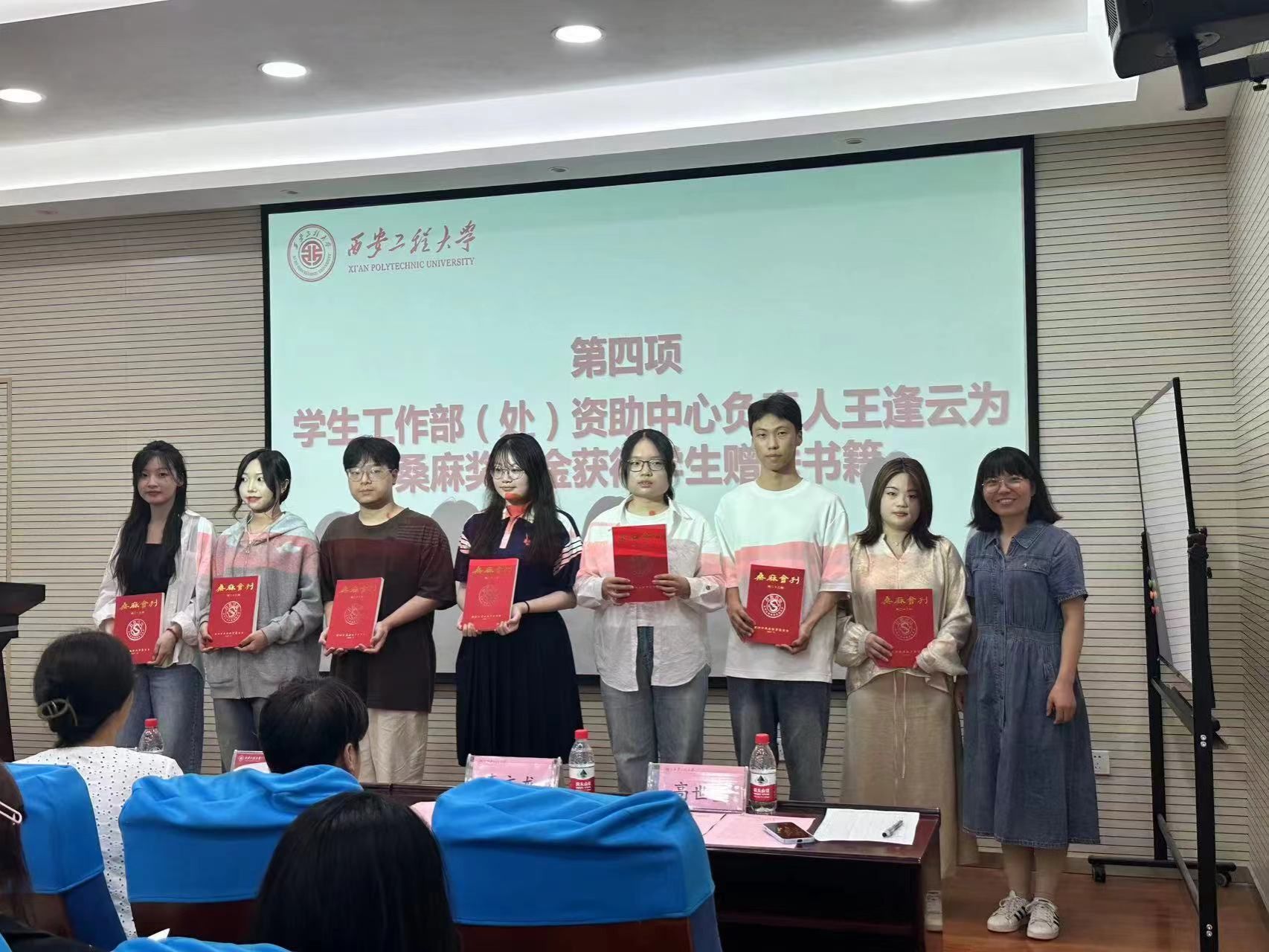 郭嫣、王逢云为“纺织之光奖学金”、“桑麻奖学金”获奖学生赠送了《纺织之光2024年闪光的足迹》《桑麻会刊》等书籍,鼓励他们继续努力学习,追求卓越。