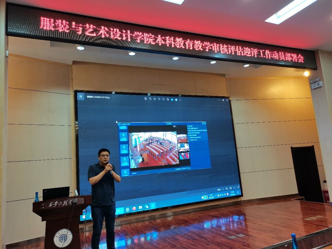 服装学院院长吕钊对评估期间的工作纪律、课堂同行专家听课助课要求、学院硬件支持等具体工作进行安排部署。他强调,一是思想上再重视,认识上再提高。全体教师要把圆满完成评建任务作为当前一段时间的重中之重来盯紧抓实、取得实效;二是责任上再明确,纪律上再严明。全体教师要自我加压,主动作为,不折不扣落实评建任务;三是激励上再精准,氛围上再浓厚。全体教职工要提振精气神,以最饱满的热情、最昂扬的斗志、最务实的作风做好迎评各项工作。