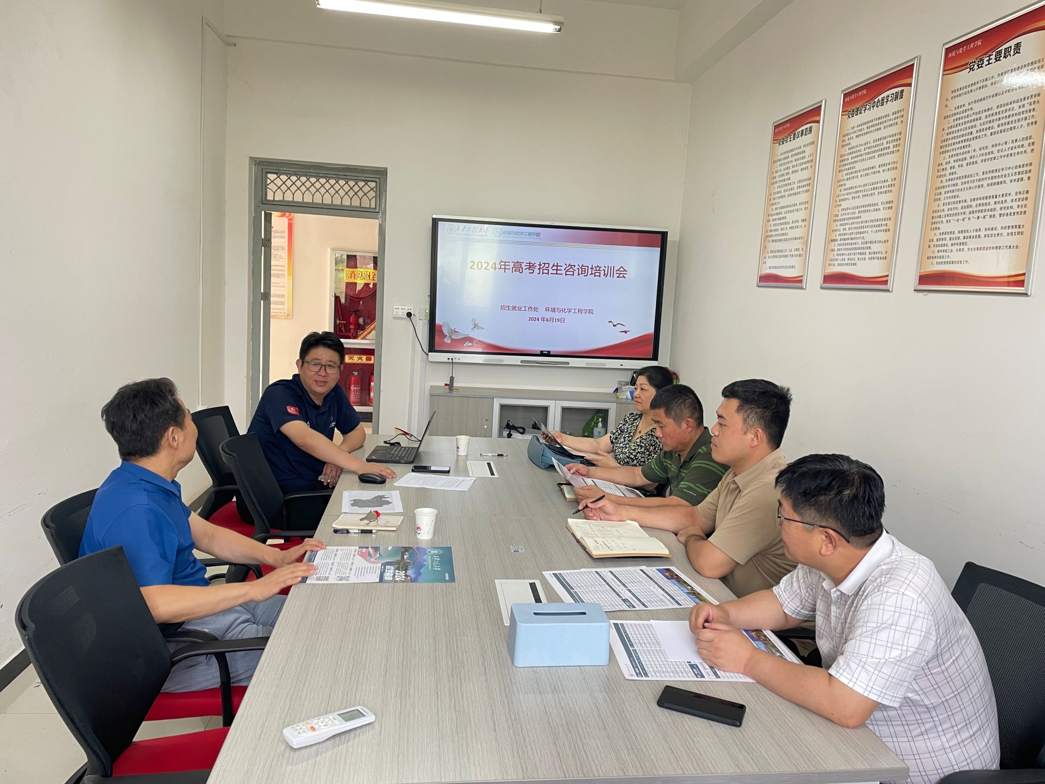为确保环境与化学工程学院2024年招生宣传工作有序进行,推进招生宣传工作规范化和精细化,切实增强宣传工作实效,6月19日,学院在238会议室召开2024年高考招生咨询培训会,会议邀请学校招生就业处马全海老师为参与今年招生宣传的各支队伍进行培训,学院招生宣传组全体成员参会,学院党委书记胡西民主持会议。