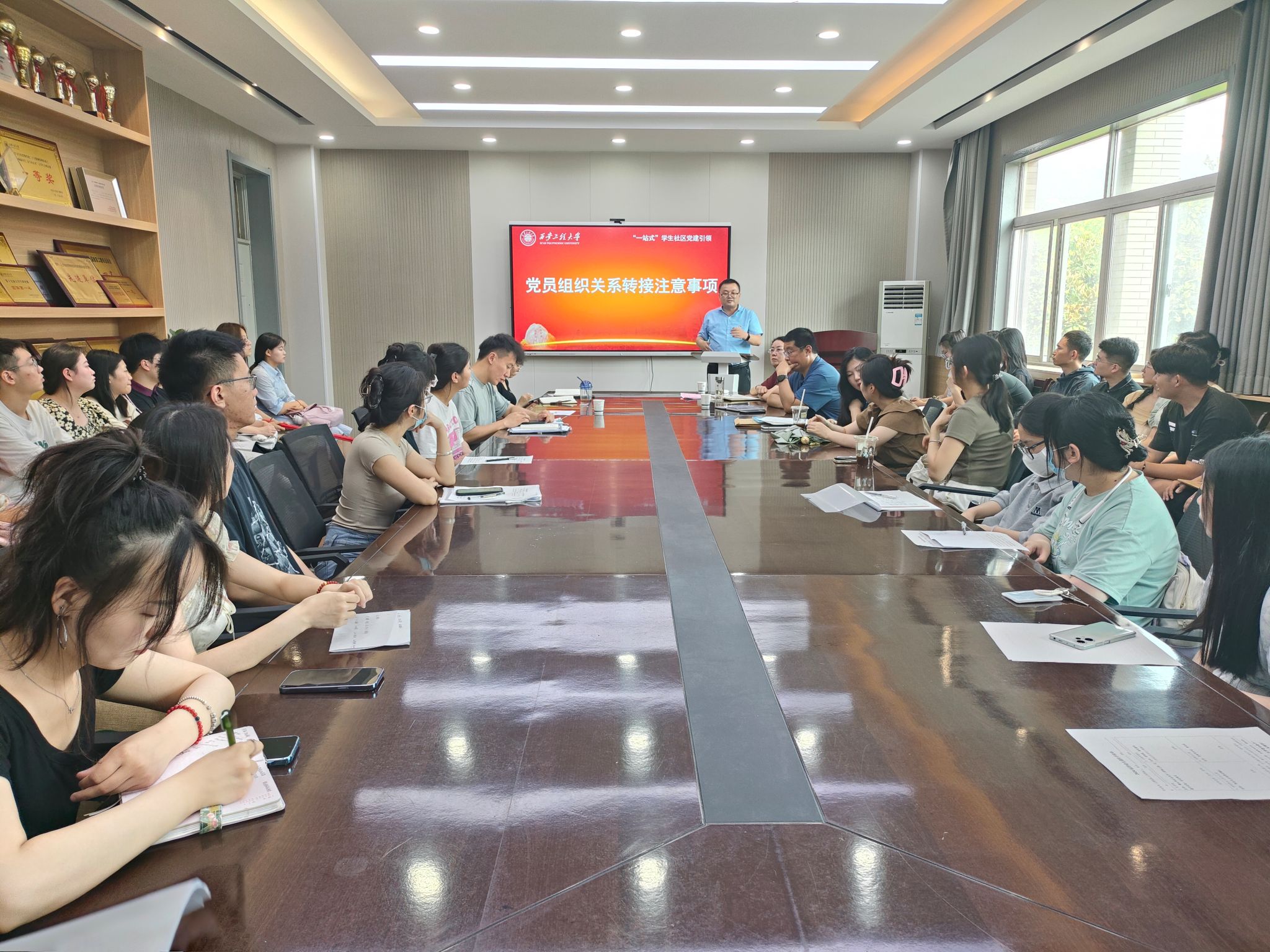 最后,学院组织员王德利向毕业生党员讲述党员组织关系转接流程和党员档案要求,并结合党员在转接党组织关系中的疑问,强调了转接中的注意事项,提醒毕业生党员及时按照要求完成党组织关系转接工作。