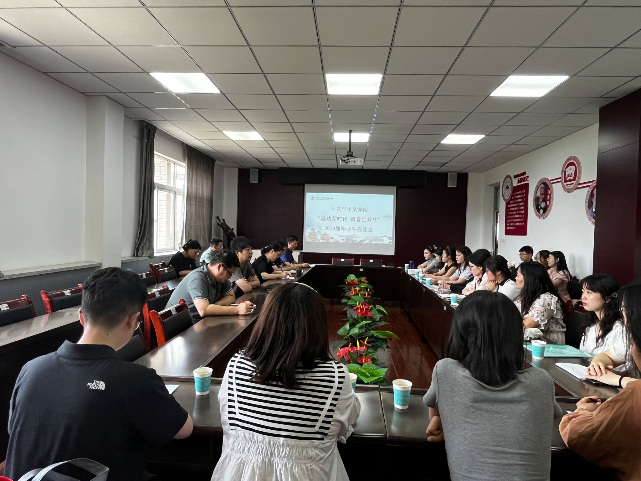 6月28日,为深入了解毕业生的学习、生活和就业状况,倾听毕业生的心声,马克思主义学院举办了以“建功新时代 青春绽芳华”为主题的2024届毕业生座谈会。马克思主义学院党委书记杨永革、副院长屈旻、研究生辅导员孙建荣、教师代表以及2024届毕业生参加了会议。