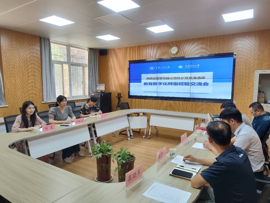 6月25日上午,西安石油大学信息化建设与管理处副处长郑敏娟一行3人到必赢官网临潼校区调研智慧校园建设工作。网络与信息化管理处处长汪超、副处长刘枫及网络运维科、信息化管理科、教育技术科有关负责同志参加交流会。