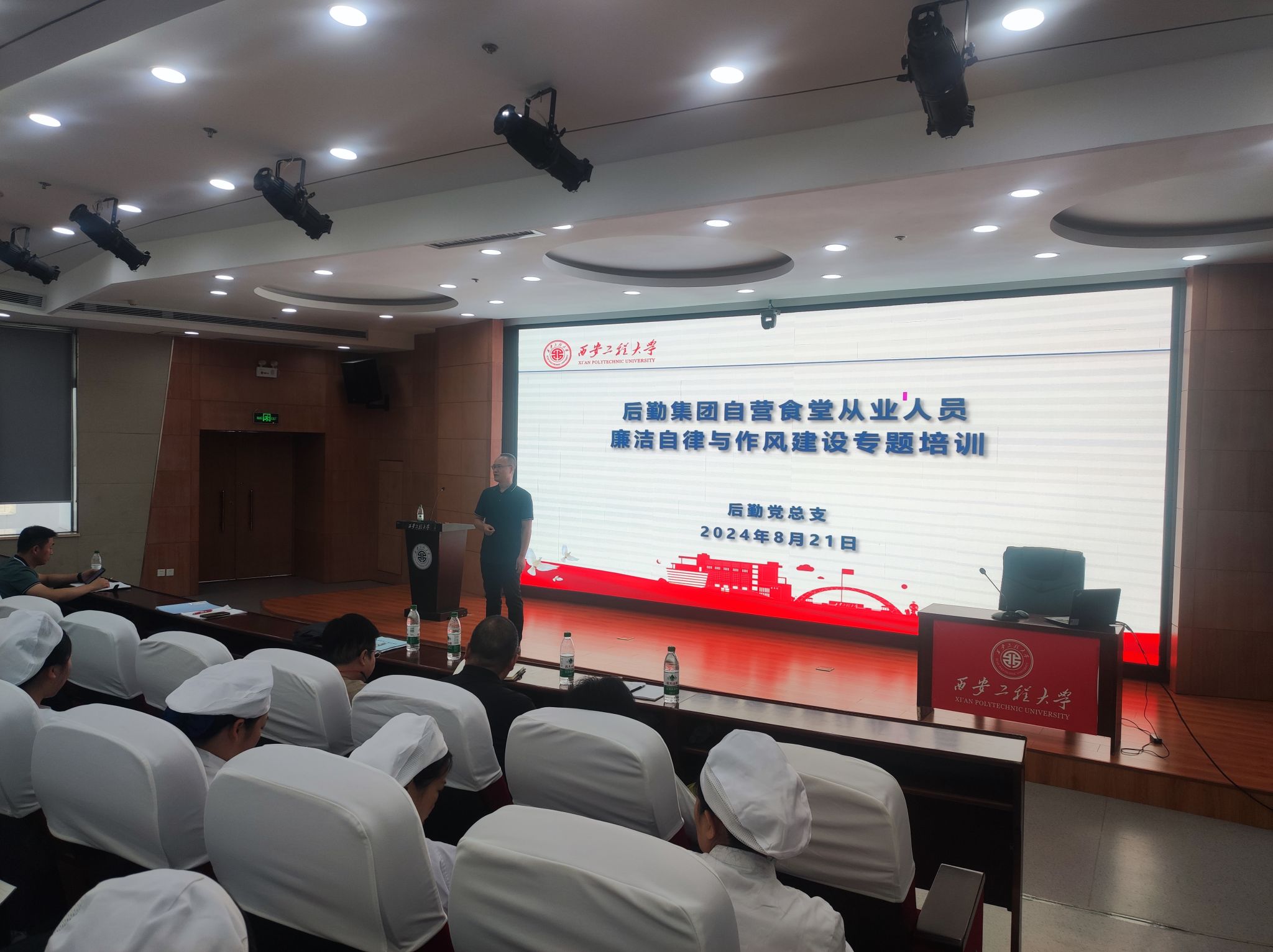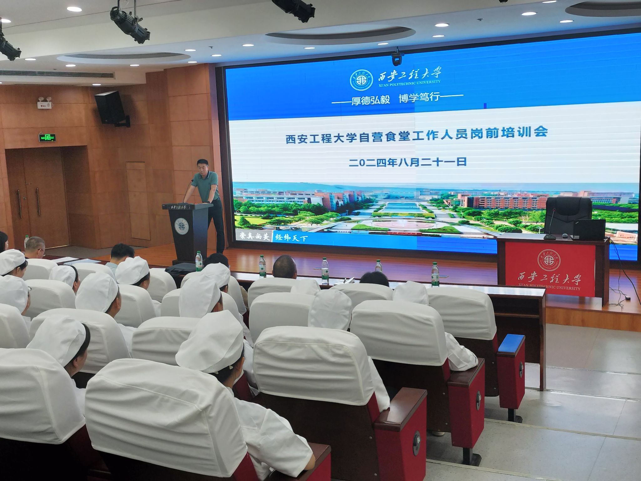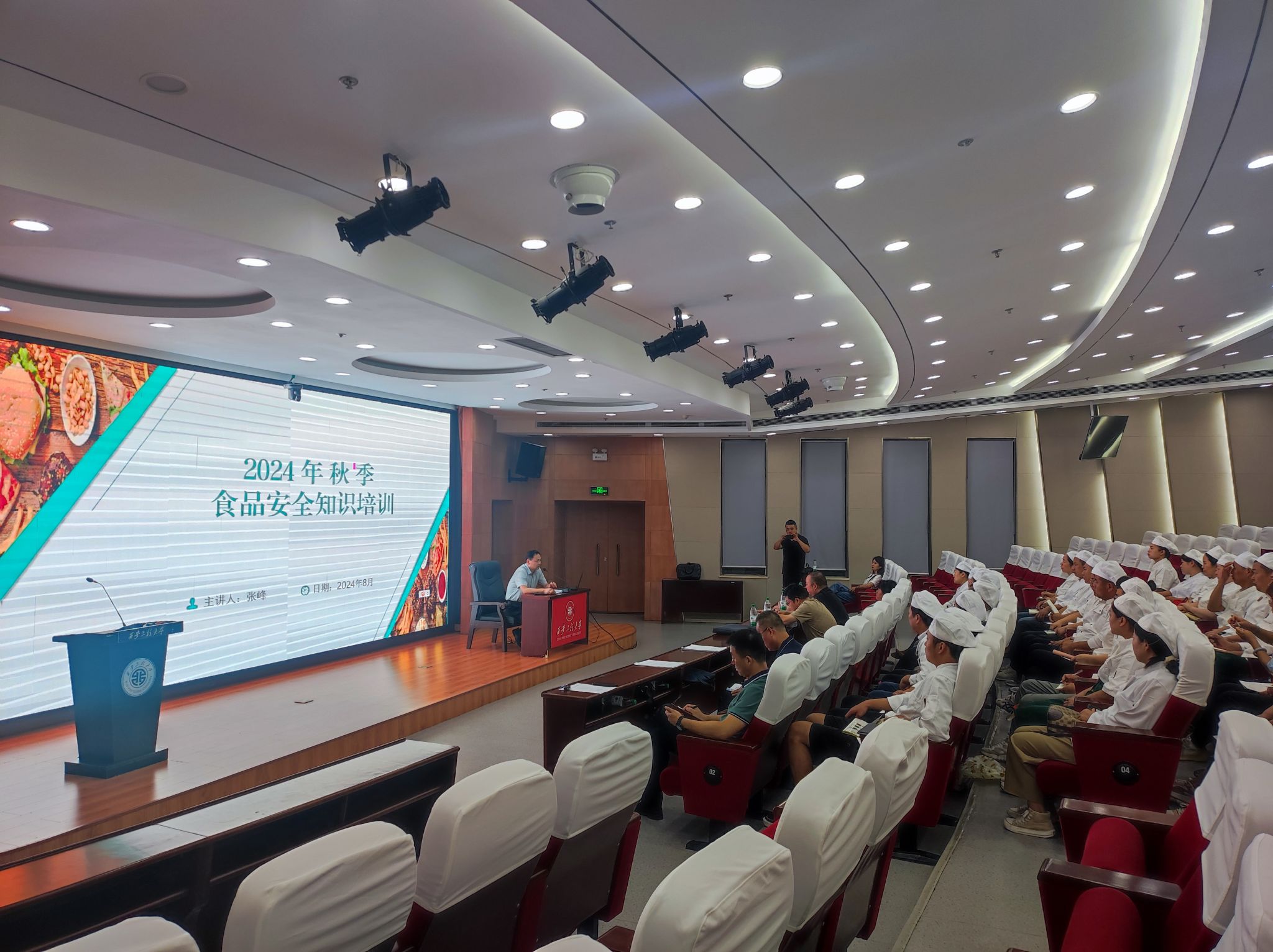 开学在即,为落实落细上级主管部门相关政策要求和学校党政关于自营食堂有关的重要决策部署,同时,为进一步提高必赢官网食堂食品安全保障能力,提升自营食堂工作人员团队凝聚力,确保学校三个自营食堂顺利开办,保障秋季开学正常供餐。8月21日上午,后勤管理处(集团)在临潼校区图书馆一层报告厅组织开展自营食堂从业人员岗前培训暨2024年度秋季开学食品安全专题培训,后勤管理处(集团)党总支书记杨森,处长张峰,餐饮管理服务中心全体人员、综合办公室工作人员、自营食堂新聘管理人员及档口代表、餐饮公司代表等共计70余人参加了培训,培训会议由餐饮管理服务中心副经理郭凯杰主持。