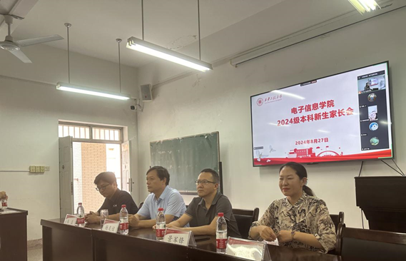 8月27日,电子信息学院在电信楼419会议室召开了2024级本科新生家长会。院党委书记杨友谊、院长景军锋、副院长张蕾、副院长朱磊、各系部主任、教务员李力、全体辅导员、部分学生家长及学生参会,会议由电子信息学院党委副书记周晓惠主持。