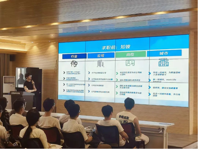 宣讲的最后,他详细介绍了云智研发公司的基本情况、发展历程、业务范围以及未来规划,还列举了丰富多彩的团建活动,让在场的师生们对公司有了更加全面深入的了解。
