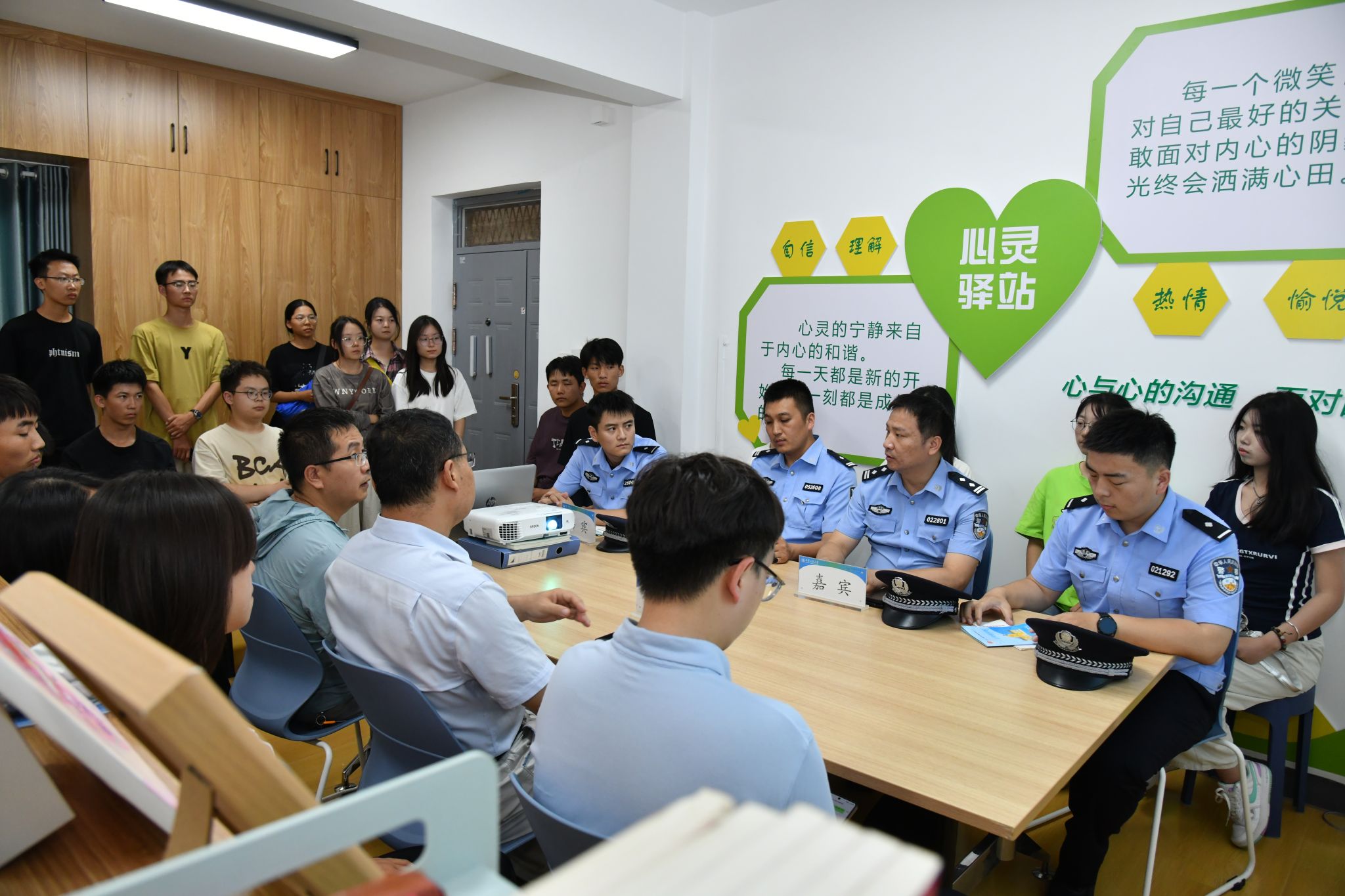为了深入开展2024年网络安全宣传周活动,切实提升师生的网络安全和防范诈骗意识,提高网络诈骗辨别能力,2024年9月12日下午,由西安市公安局临潼分局网安大队、临潼公安分局斜口派出所、校党委学工部、校团委、校网络与信息化管理处和计算机科学学院联合主办的驻地民警高校社区行——防范网络诈骗宣传座谈会在计算机科学学院2号学生公寓“一站式”学生社区举行。临潼公安分局网安大队周凌峰、车孟博,斜口派出所王浪(副所长)、王秦越等4名警官应邀作为嘉宾出席座谈会,计算机科学学院党委副书记赵勇进、网络与信息化管理处韩伟工程师、2024级本科生辅导员刘宇哲和20余名计算机学院本科生参加座谈会。