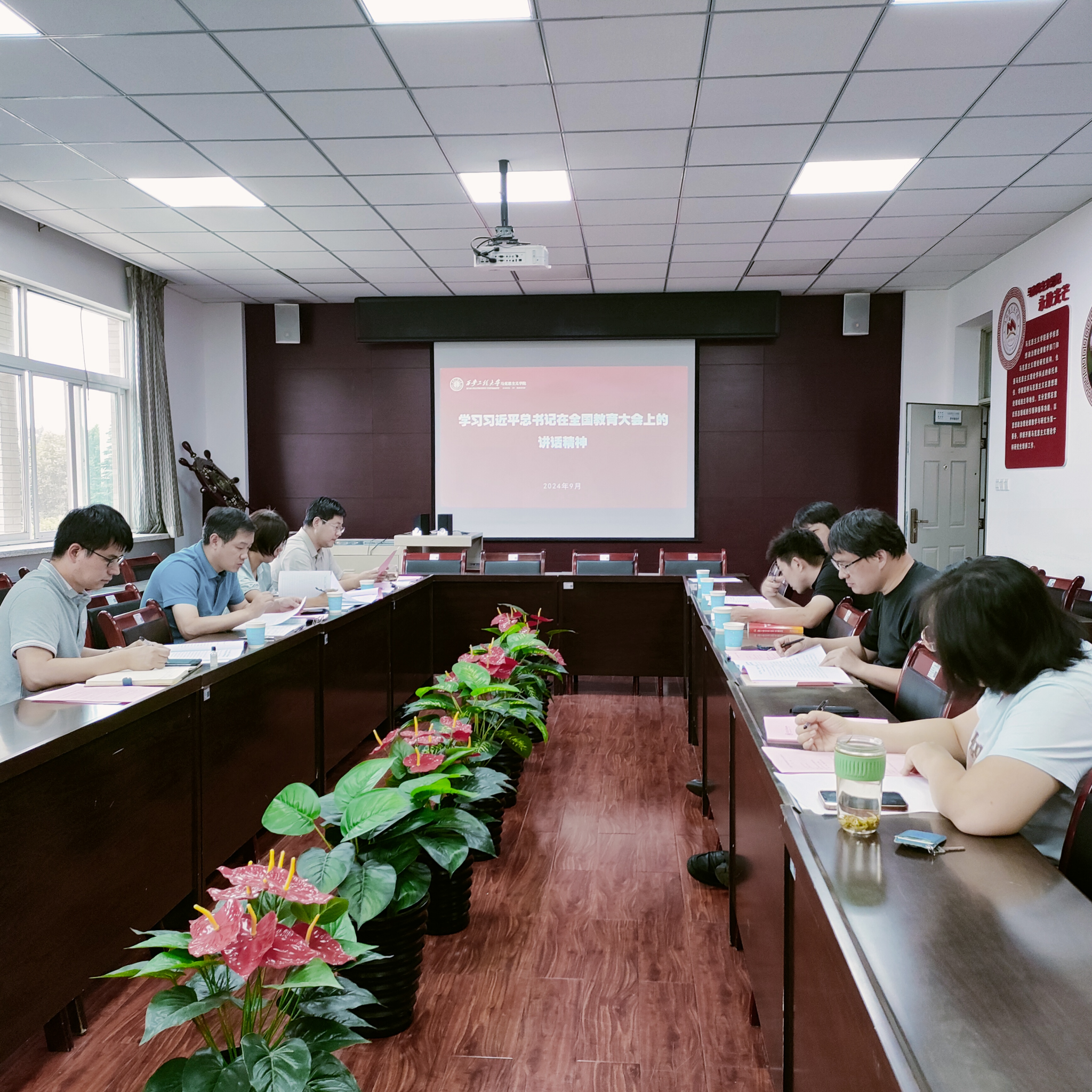 围绕学习内容,与会人员结合工作实际展开了交流讨论。大家一致认为,要深入学习宣传、贯彻落实党的二十届三中全会、全国教育大会等重要会议和文件精神,聚焦立德树人根本任务,把学习所得所思所想有机融入到思政课堂中,不断提升育人成效。将党建工作和中心工作有机融合,把理论学习内容与学院近期学位点评估、思政课教师培训等重点工作任务有效结合,把贯彻落实会议精神转化为干事创业、创先争优的精神动力和使命担当,以钉钉子精神推动各项工作部署落地见效。